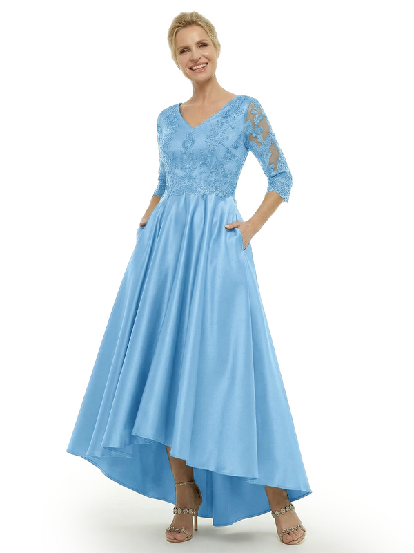 Material: soft satin, lace applique, pongee.