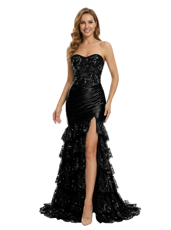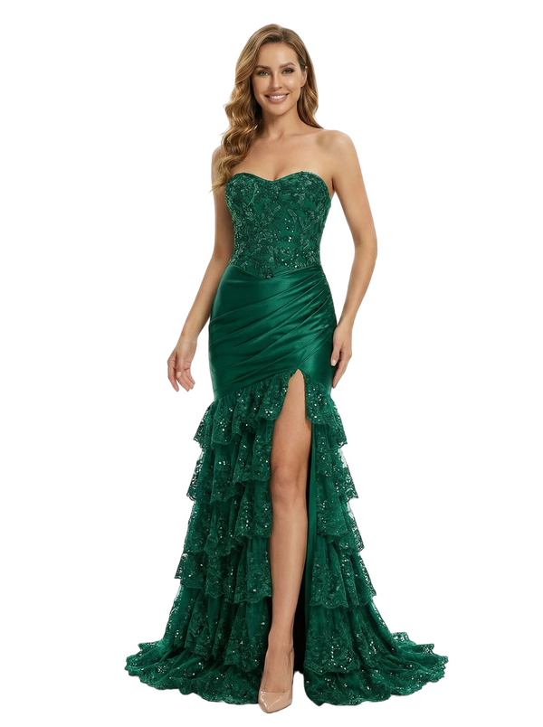 Embellishment: Lace Applique, Side Slit, Ruffle