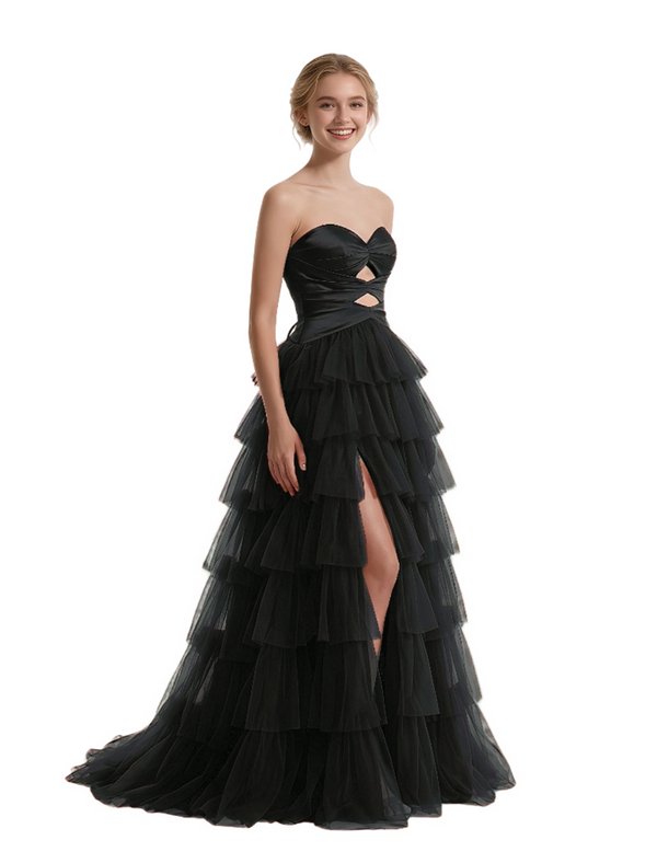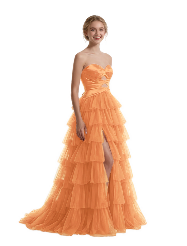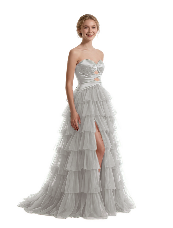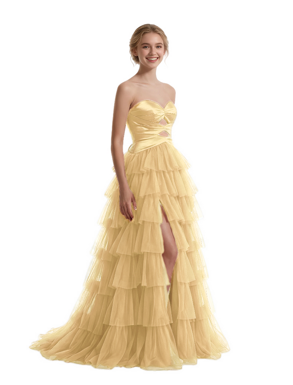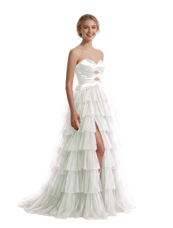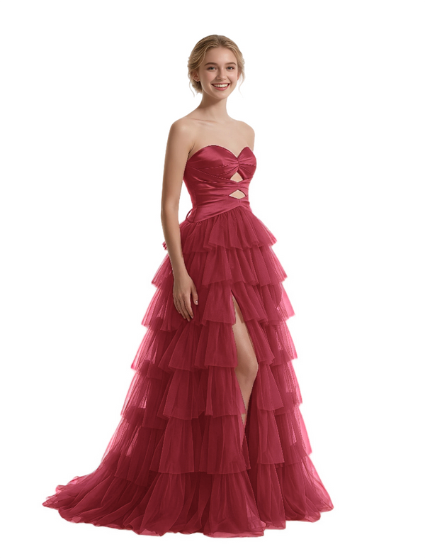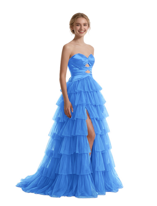 Beautiful Sweetheart Ruffles Side Slit A-Line Floor-Length Long Party Prom Dresses