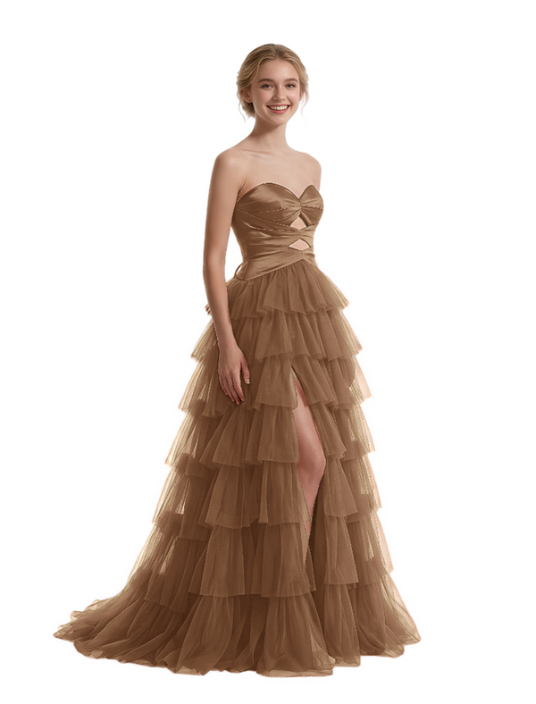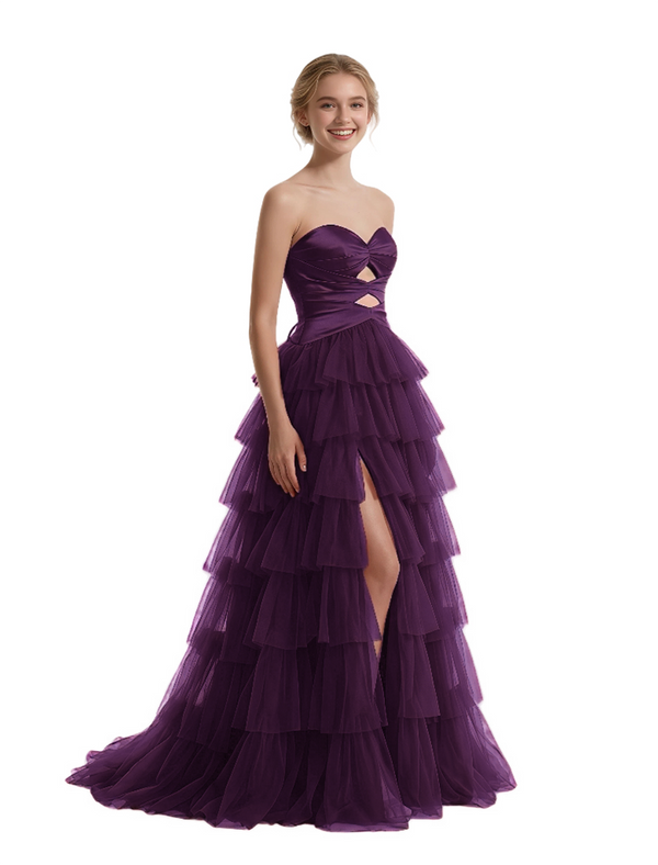 Beautiful Sweetheart Ruffles Side Slit A-Line Floor-Length Long Party Prom Dresses- ChicSew – ChicSew
