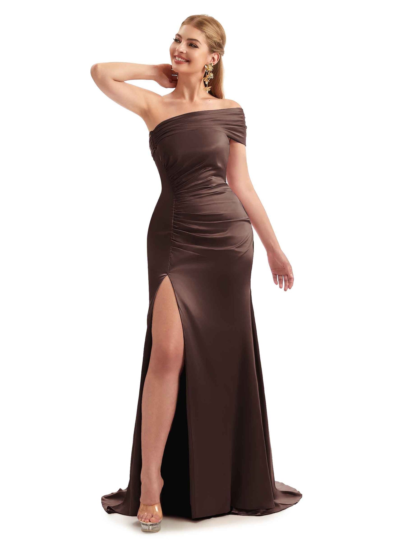 Black Modern Side Split Satin Bridesmaid Dresses - ChicSew – ChicSew
