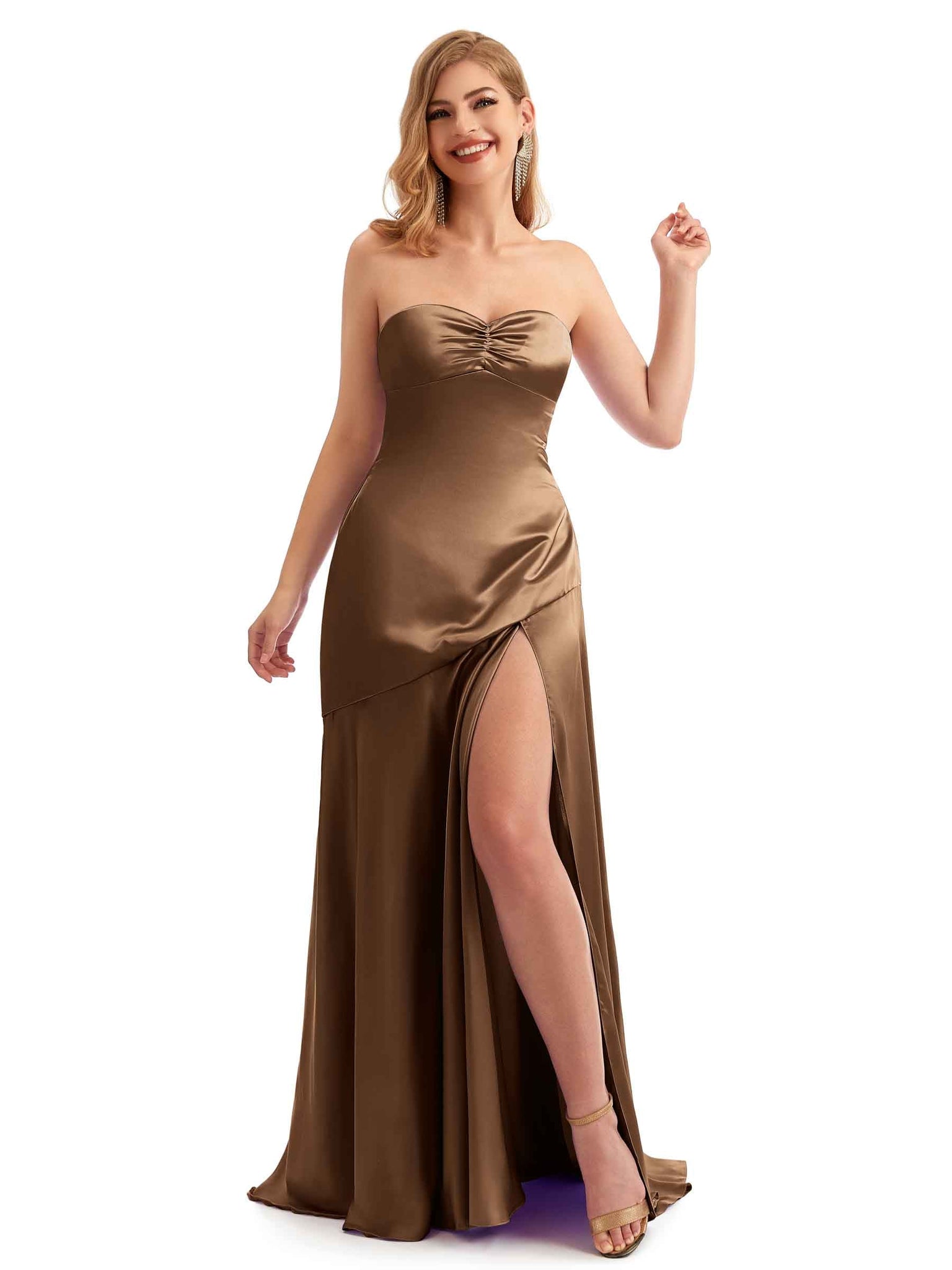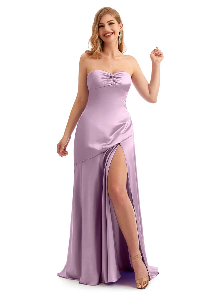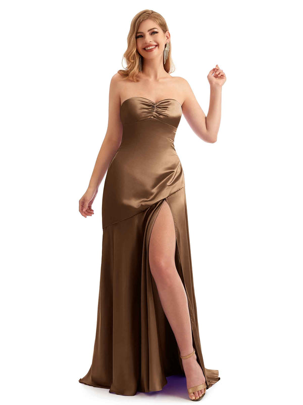 Black Simple Sweetheart Satin Long Bridesmaid Dresses - ChicSew – ChicSew