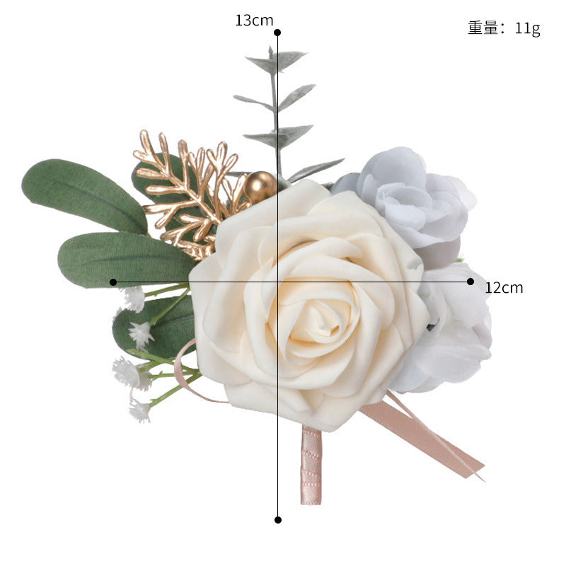 Bridesmaids Wrist Flower Champagne Green Lleaf Hand Flower Men Corsage – ChicSew