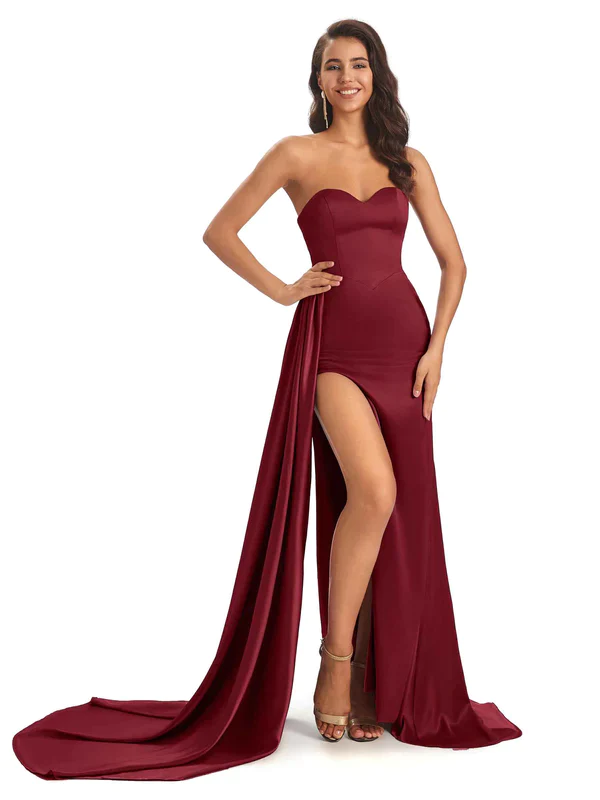 Burgundy Sexy Side Slit Silky Mismatched Soft Satin Mermaid Long Bride – ChicSew