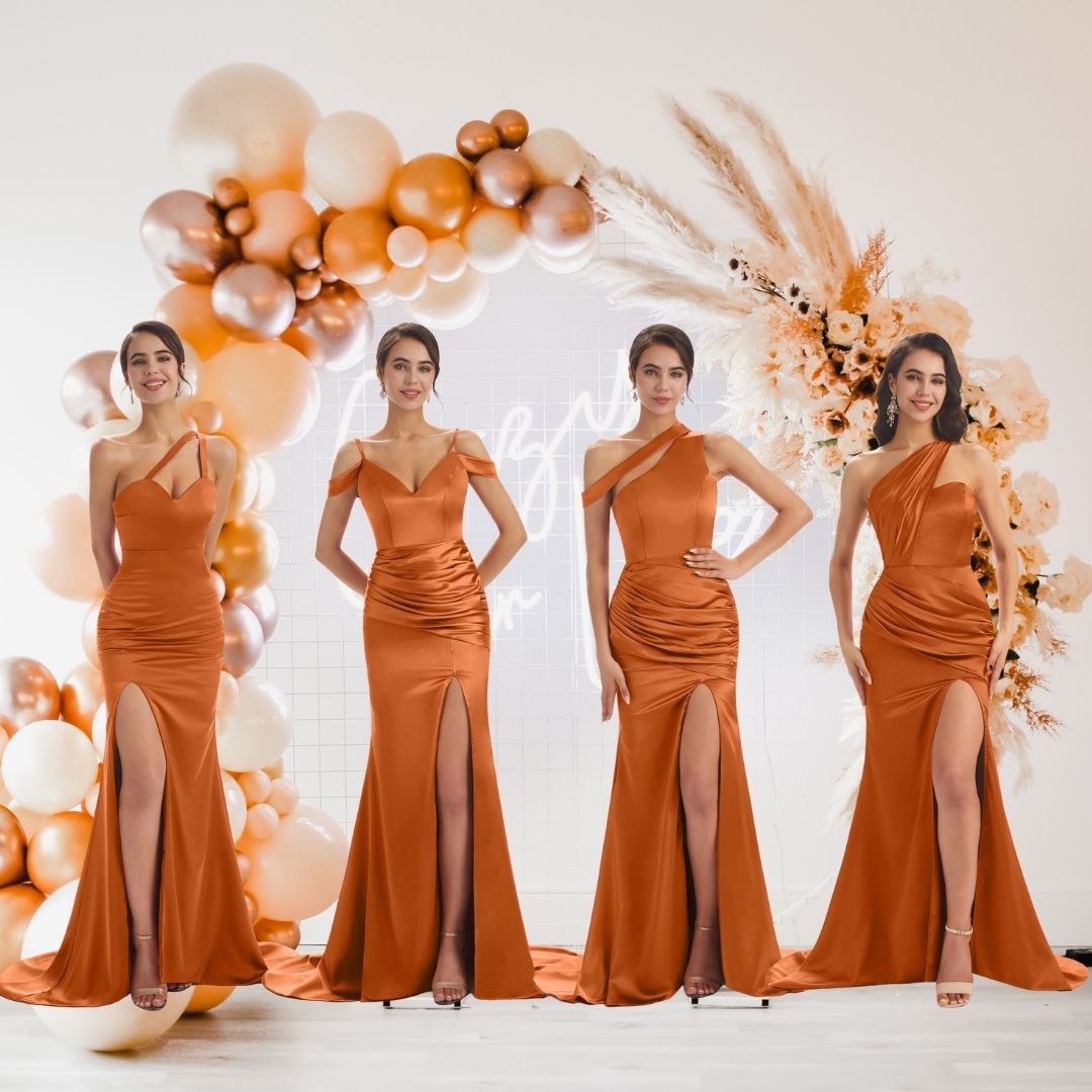 Burnt Orange Sexy Chic Silky Mismatched Satin Mermaid Long Bridesmaid – ChicSew
