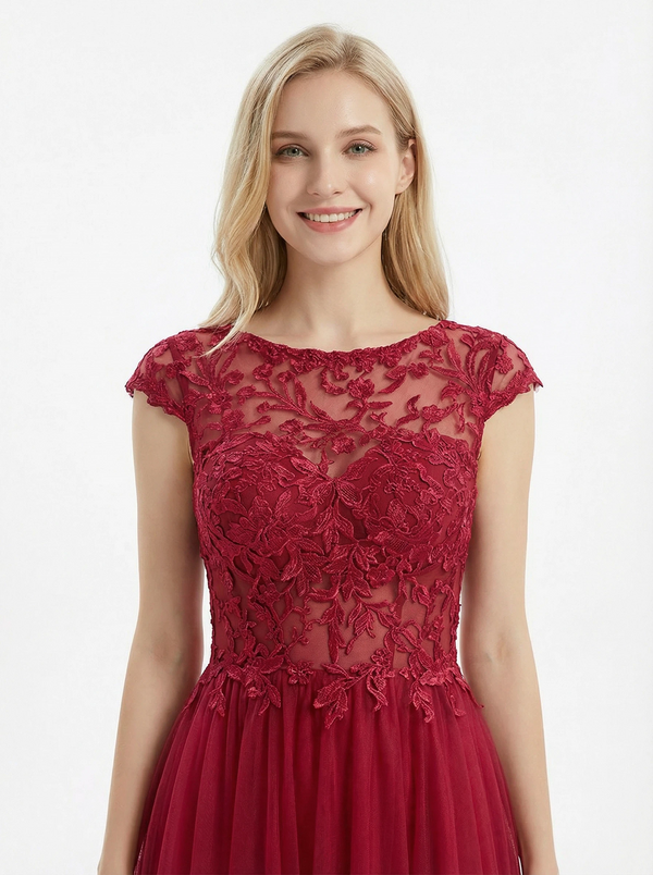 Classy Scoop A-Line Formal Dress with Floral Lace Embroidery and Tulle Skirt - ChicSew – ChicSew
