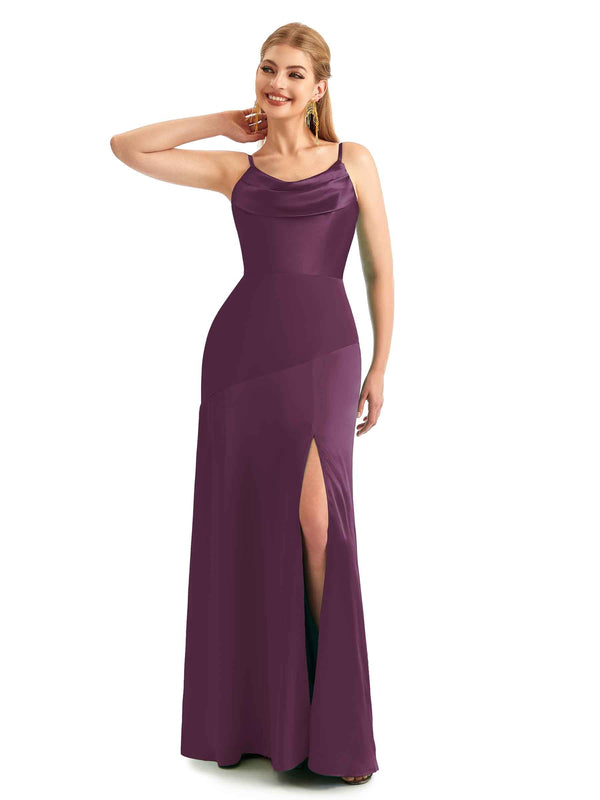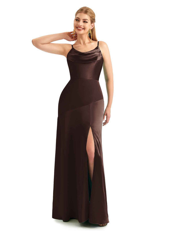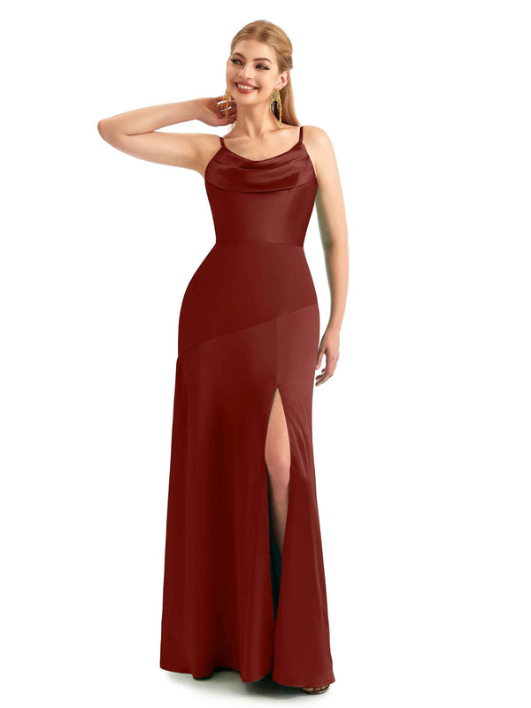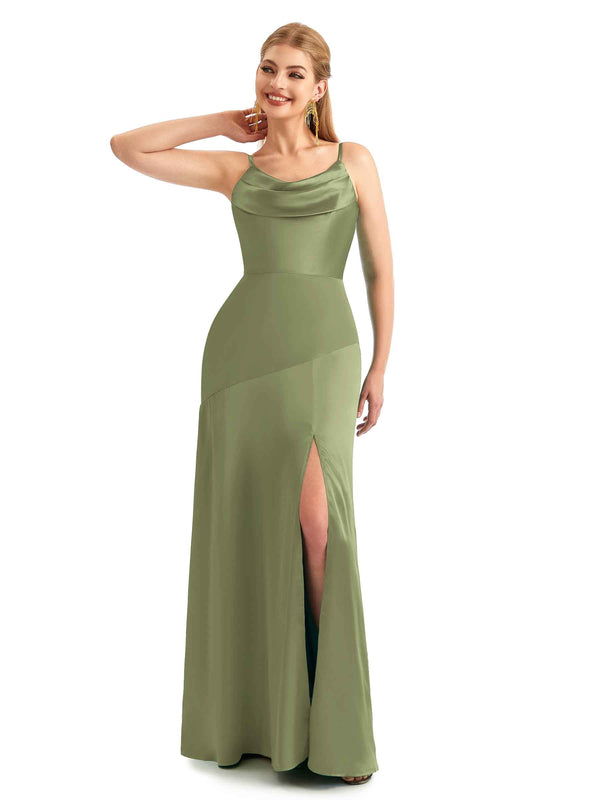Casual Boho Scoop Cowl Neck Satin Bridesmaid Dresses $108.99