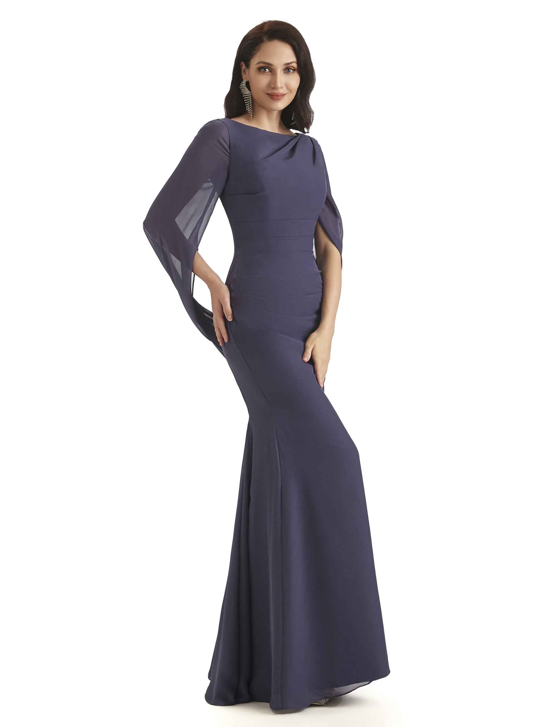 Casual Mermaid Chiffon Half Sleeves Long Mother of The Bride Dresses - ChicSew – ChicSew