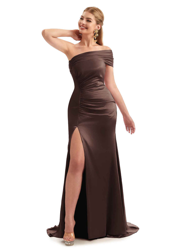 Champagne Modern Side Split Satin Bridesmaid Dresses - ChicSew – ChicSew