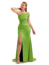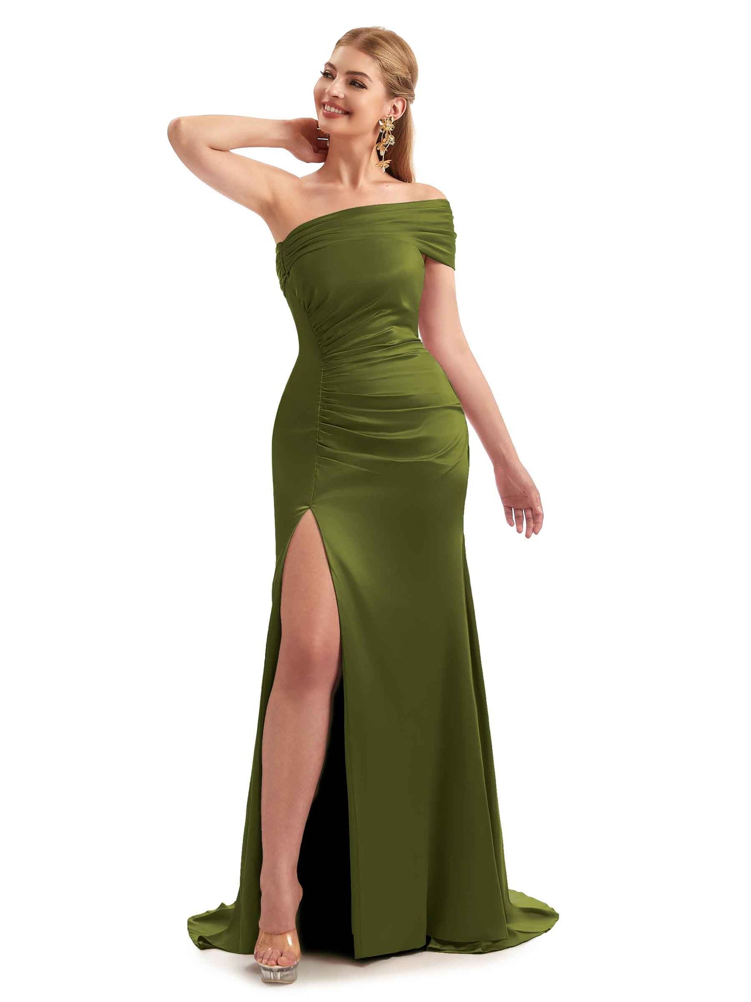 Champagne Modern Side Split Satin Bridesmaid Dresses