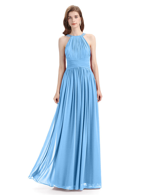 Charming Halter Chiffon A-line Sleeveless Floor-Length Bridesmaid Dresses - Chicsew – ChicSew
