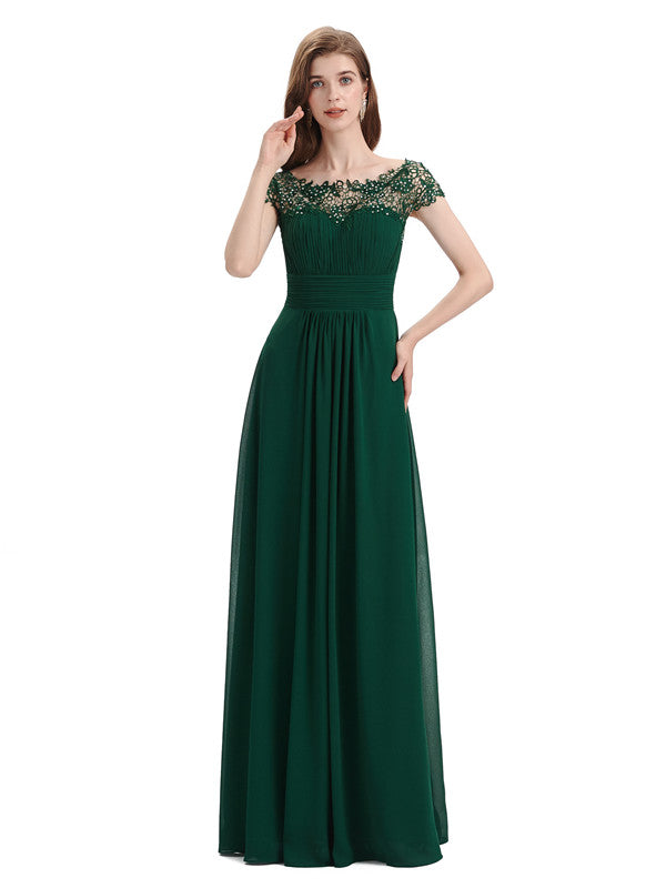 Elegant Short Sleeves Beaded Pleats A-line Floor-Length Mother of The Bride DressesElegant Short Sleeves Beaded Pleats A-line Floor-Length Mother of The Bride Dresses