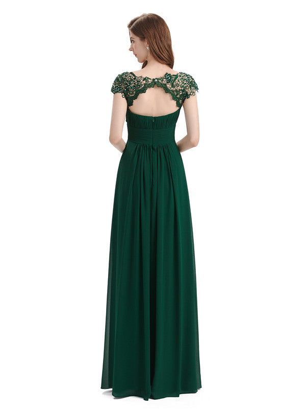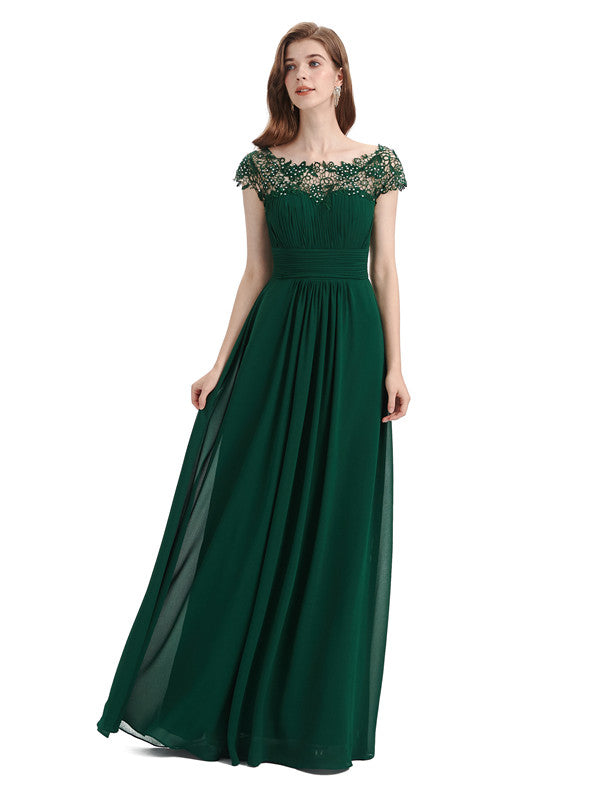 Elegant A-line Short Sleeve Floor-Length Bridesmaid Dresses