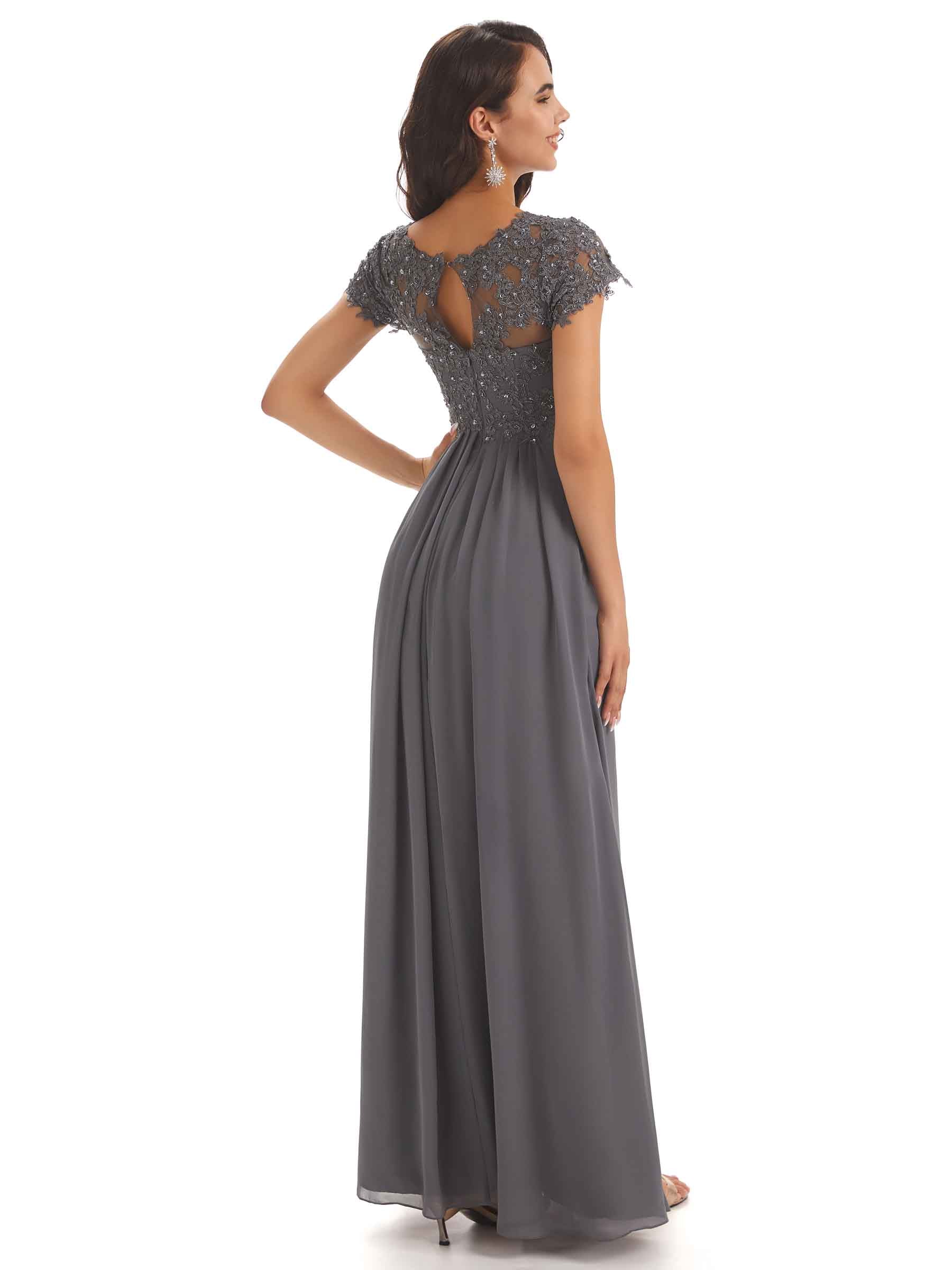 Elegant Lace Short Sleeves Chiffon V-neck Floor-length Mother of The Bride DressesElegant Lace Short Sleeves Chiffon V-neck Floor-length Mother of The Bride Dresses