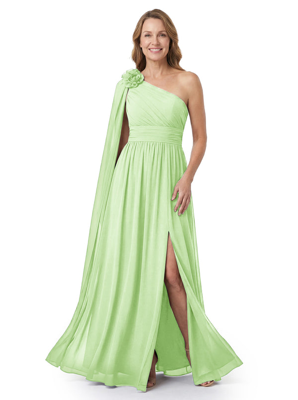 ChicSew Asymmetric Ruched Floor Length Side Slit Chiffon Mom Of The Groom Dresses