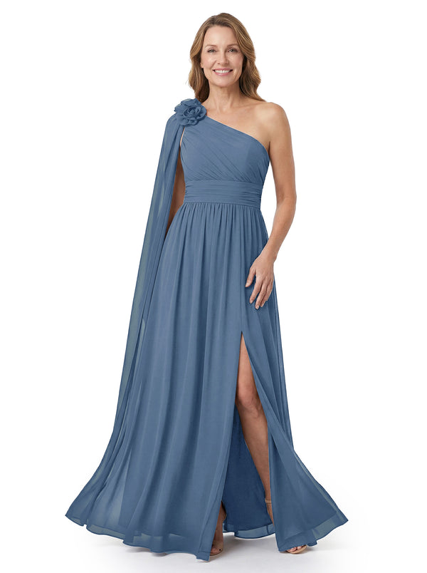 ChicSew Asymmetric Ruched Floor Length Side Slit Chiffon Mom Of The Groom Dresses - ChicSew – ChicSew