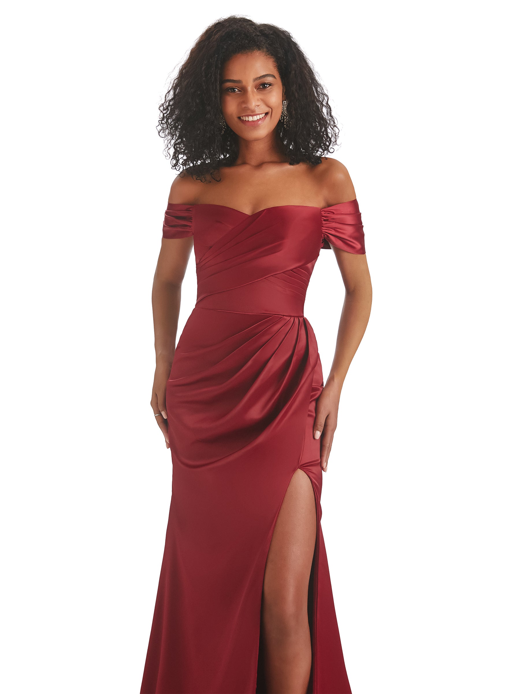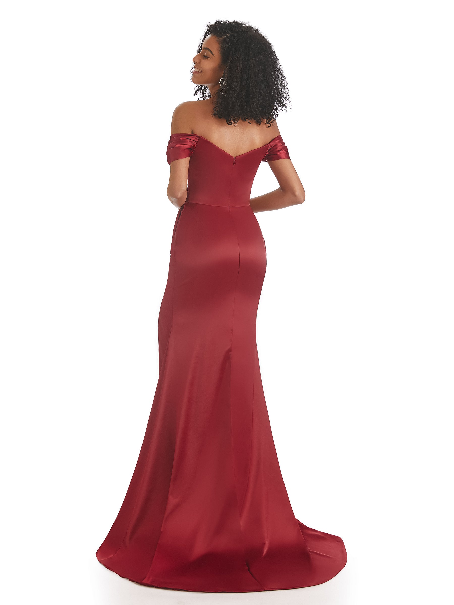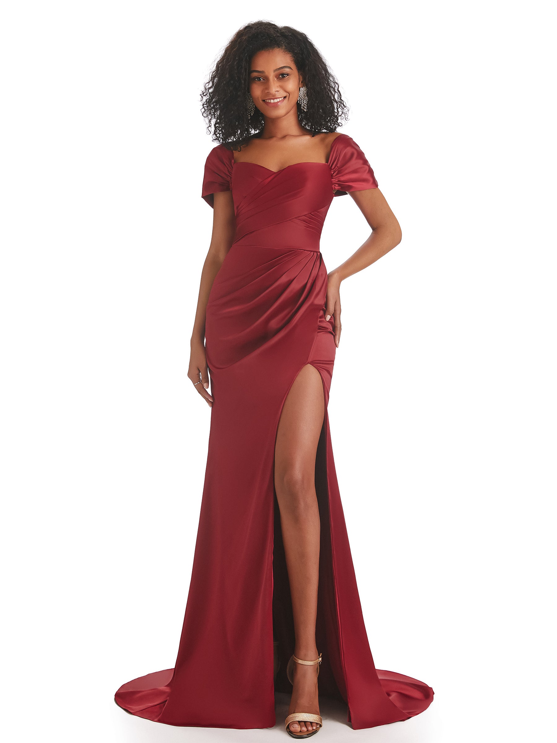 Charming Off-shoulder Mermaid Side Slit Soft Satin Long Bridesmaid Dresses - ChicSew – ChicSew