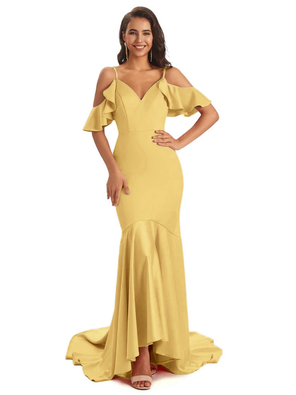 Since it's mermaid style, so only error is less than 1'' between your real measurements (bust, waist, hip: biggest part of hip, hollow to floor with shoes on) and standard size, then choose standard size otherwise it's better Custom size. Please note if your real measurements are smaller than dress, then pleats and ruches will become loose; if your real measurements are bigger than dress, then pleats and ruches will be spread to plain, so dress will not be the same as picture shown.