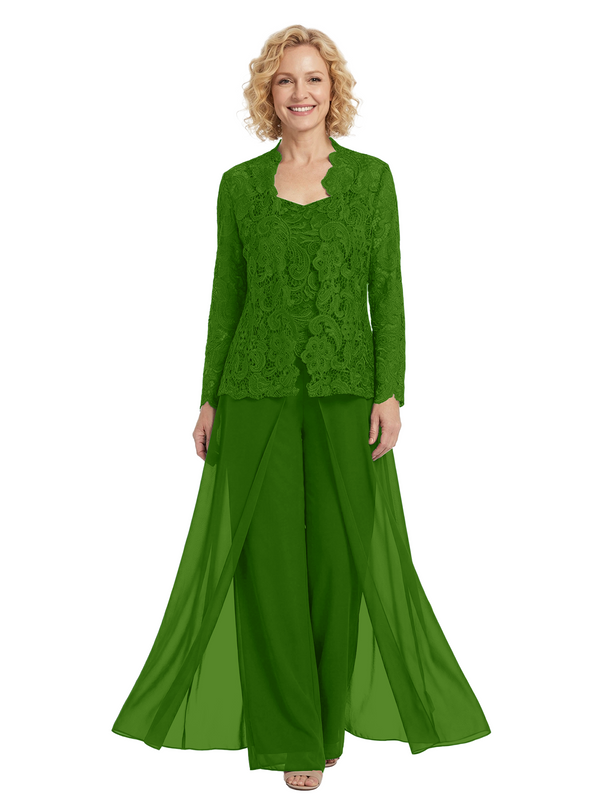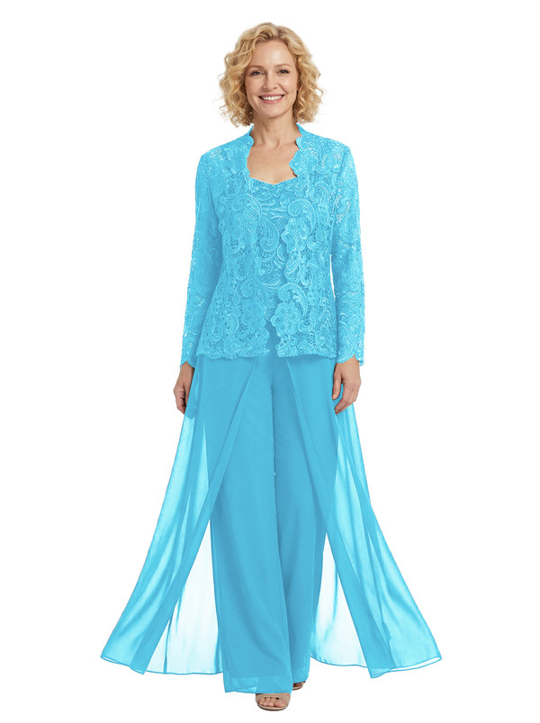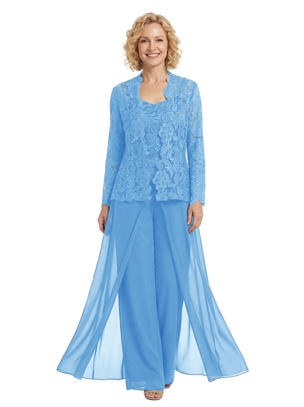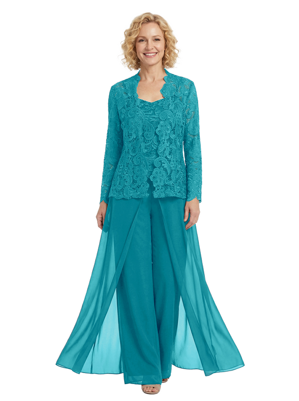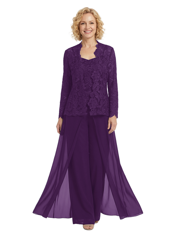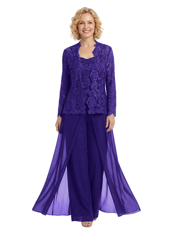 Chicsew Chiffon Mother Of The Bride Three Piece Pantsuit Lace Formal Wedding Mother Of Bride Pantsuits