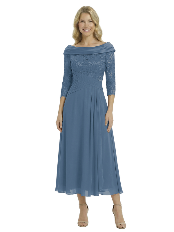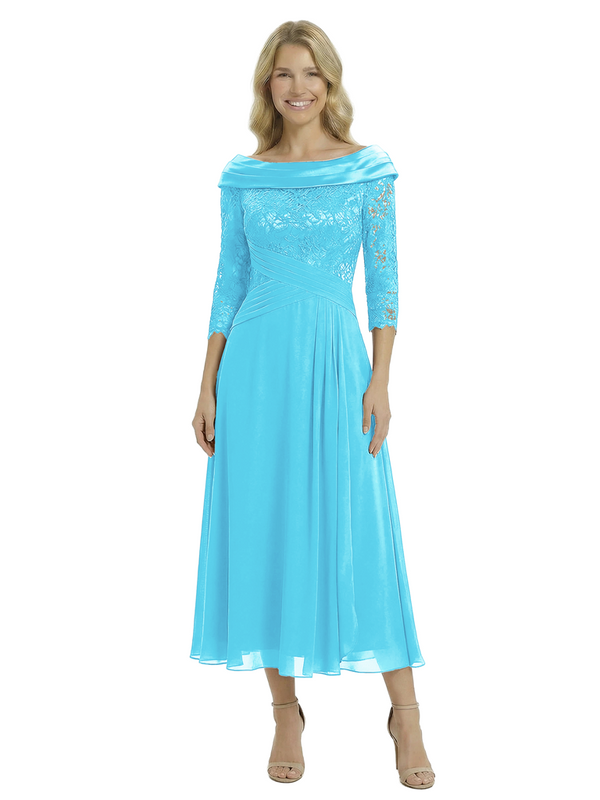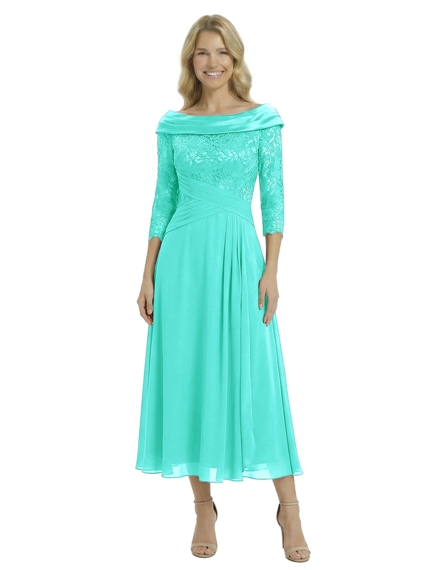 Chicsew Classy Chiffon A-Line Off The Shoulder Lace Applique Tea-Length Mother Of The Groom Dress - ChicSew – ChicSew