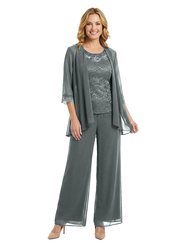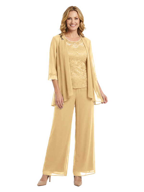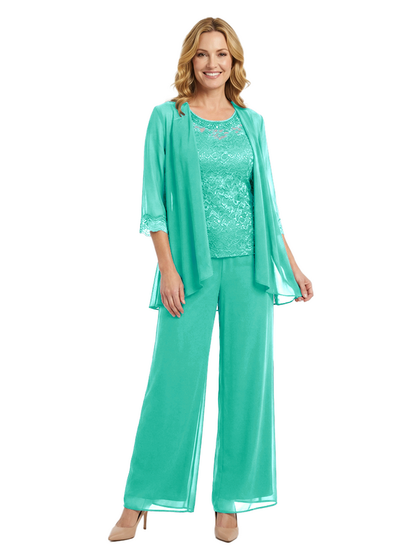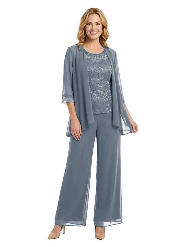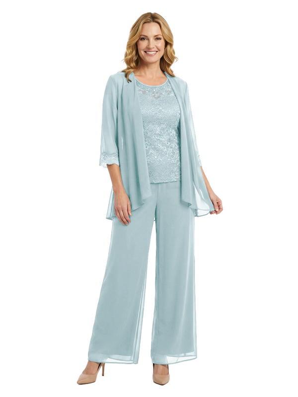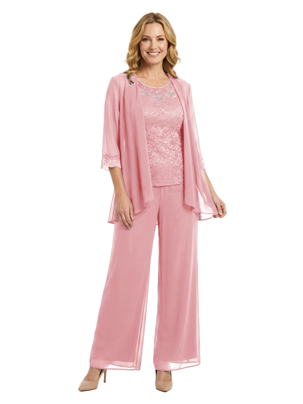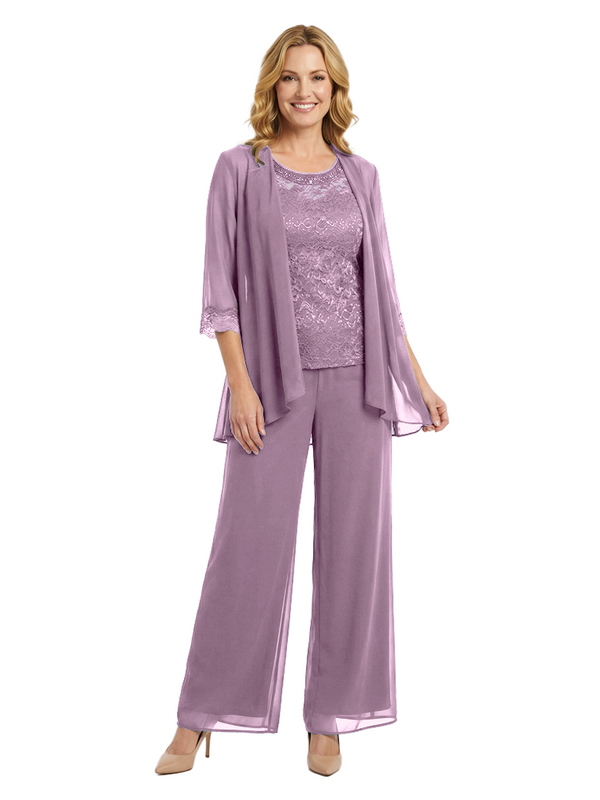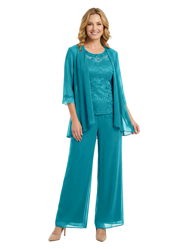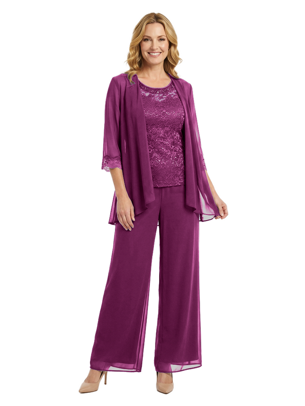 Chicsew Classy Mother Of The Bride Pantsuit Lace Top Wide Leg Jumpsuit Wedding Guest - ChicSew – ChicSew
