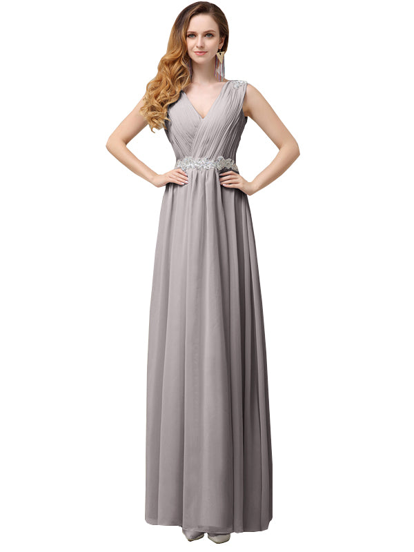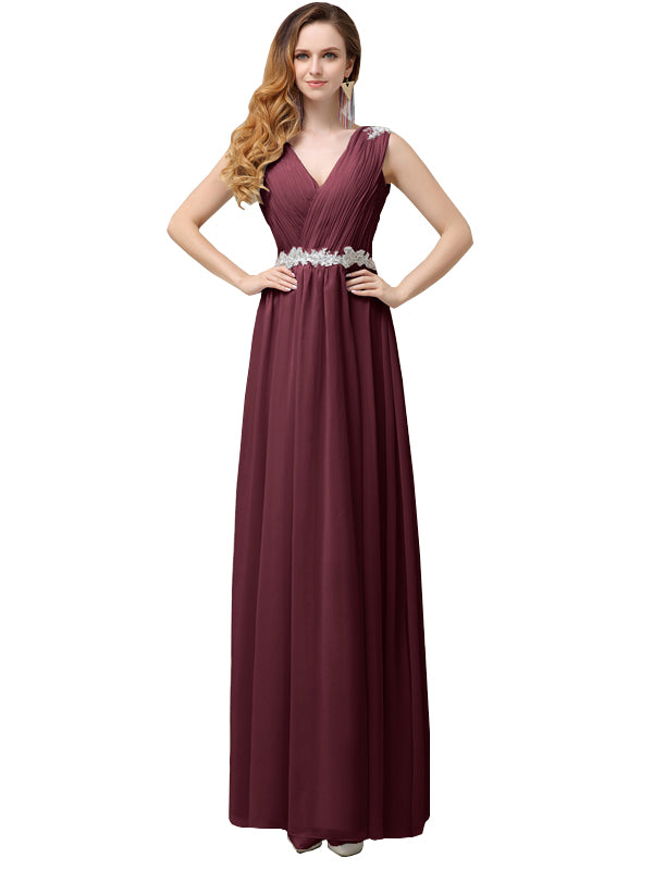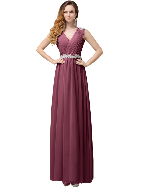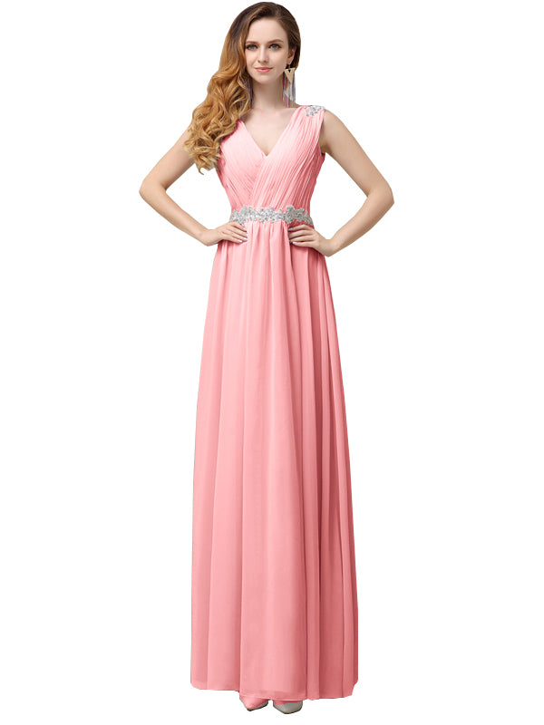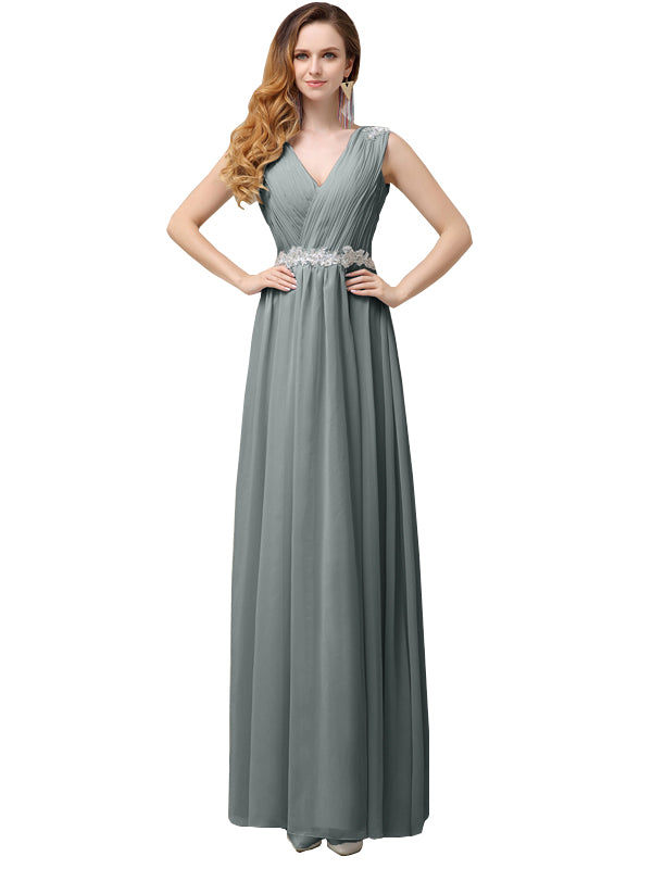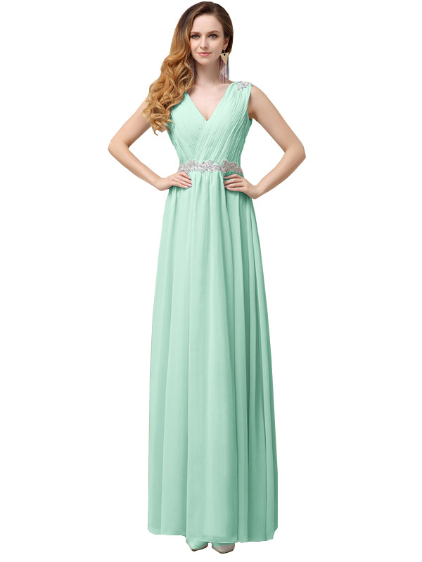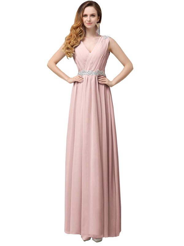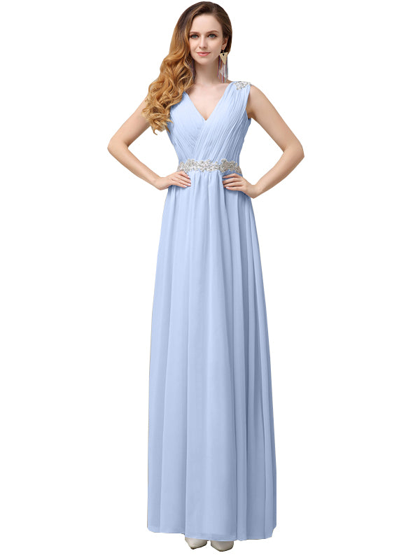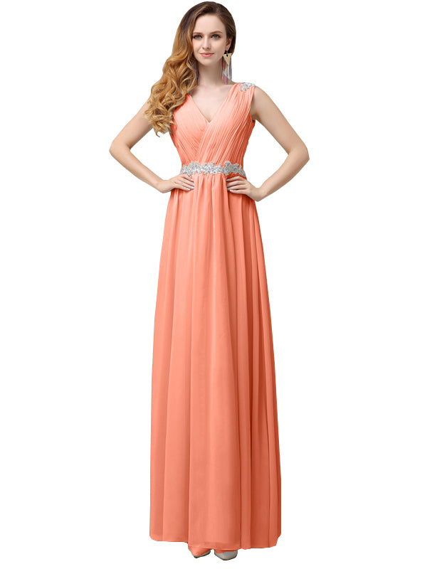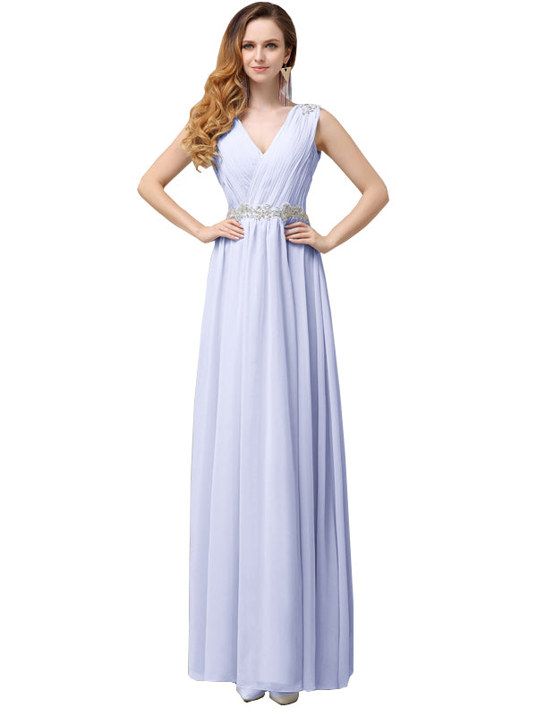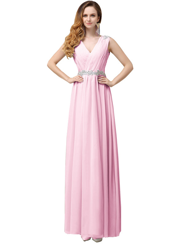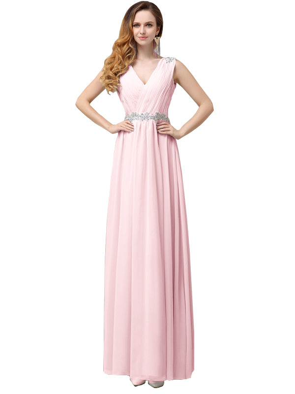 A-line Chiffon V-Neck Floor-Length Long Bridesmaid Dresses