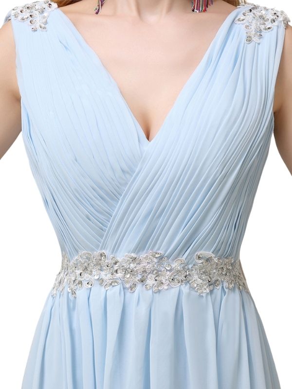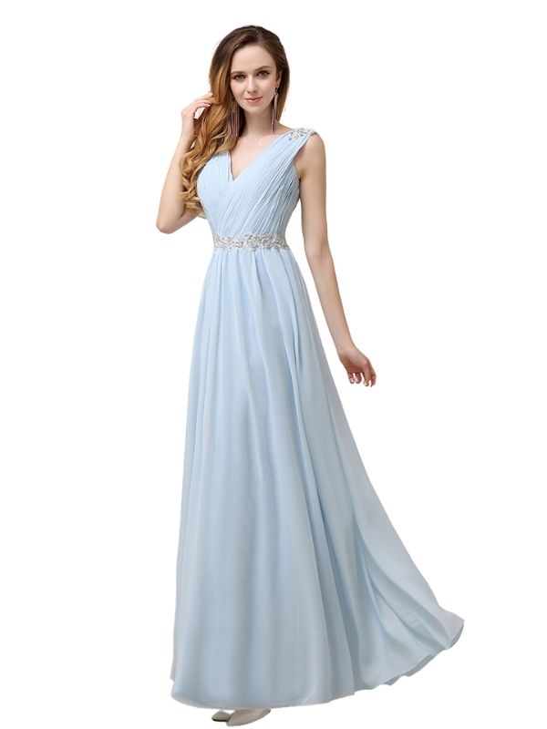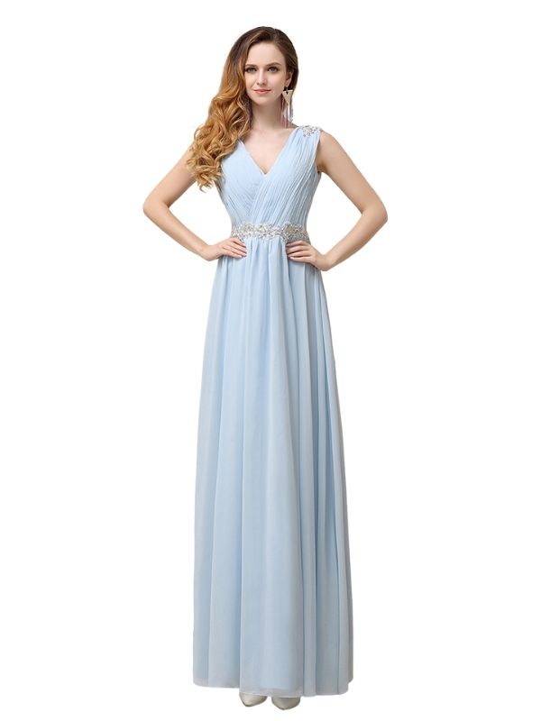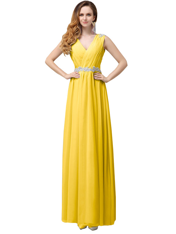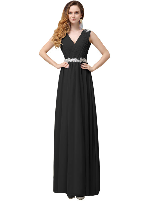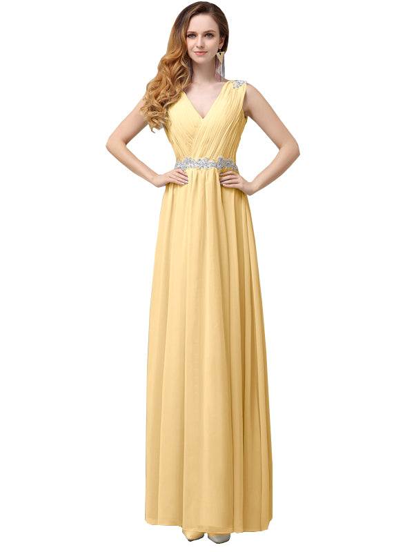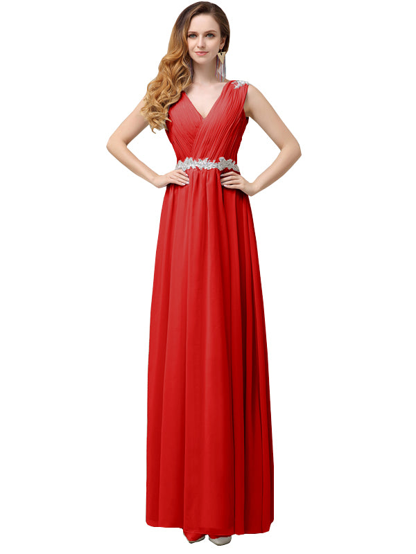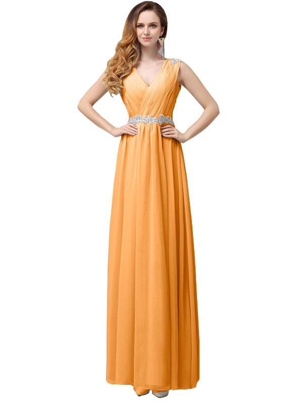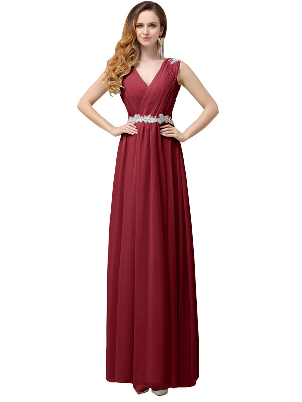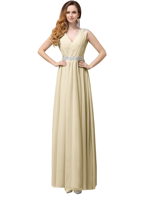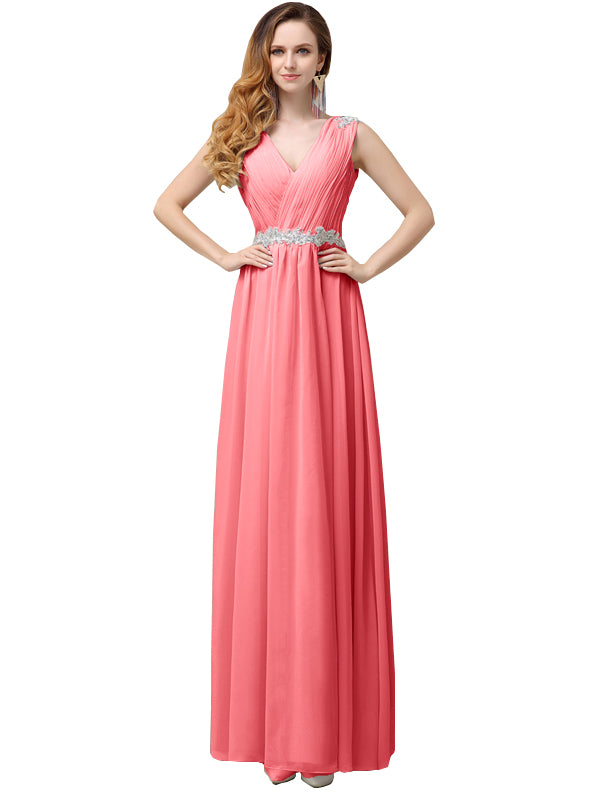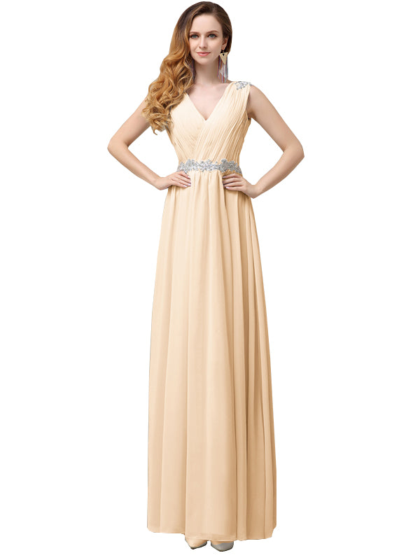 A-line Chiffon V-Neck Floor-Length Long Bridesmaid Dresses