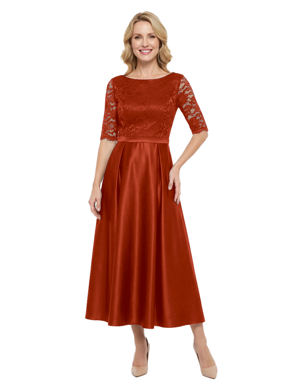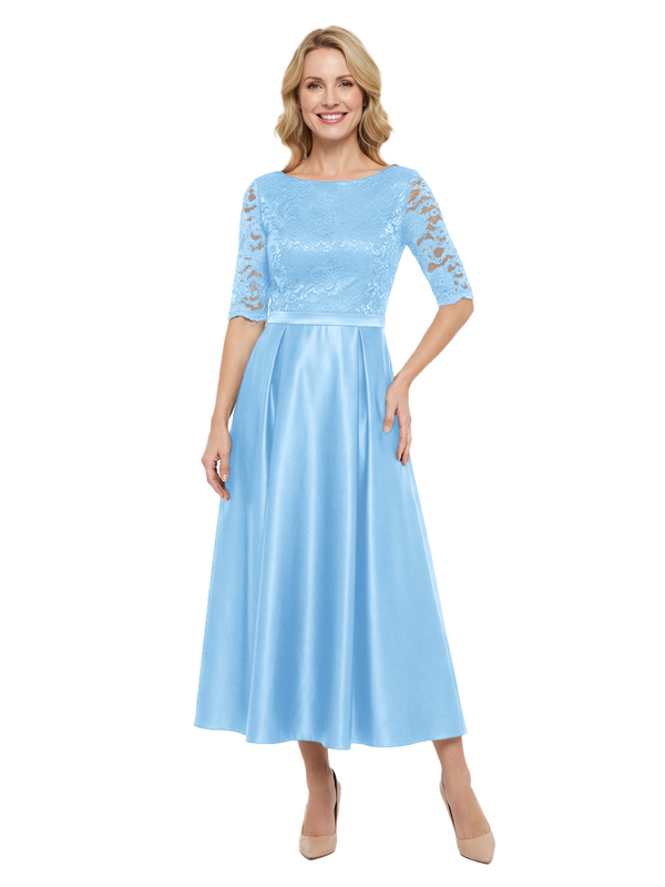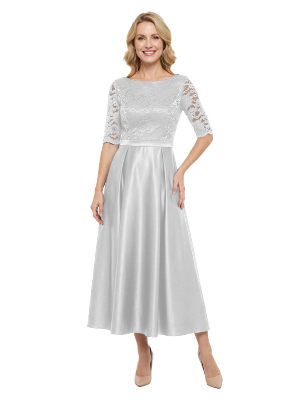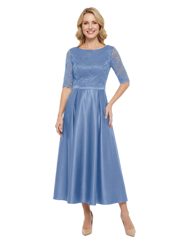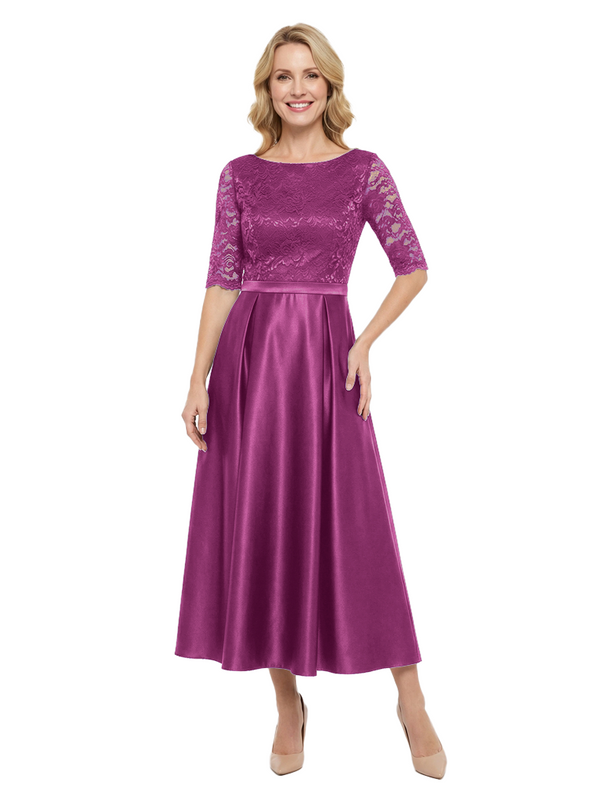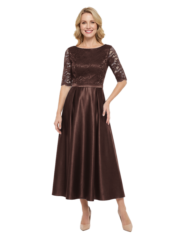 Chicsew Elegant Boat Neck Lace 3/4 Sleeves Satin Ankle-Length A-Line Mother Of The Bride Dress- ChicSew – ChicSew
