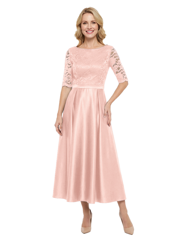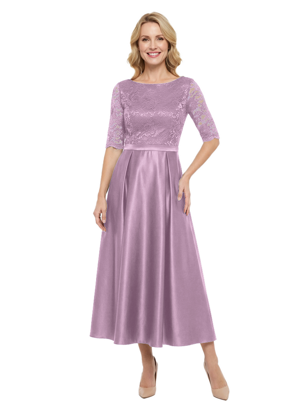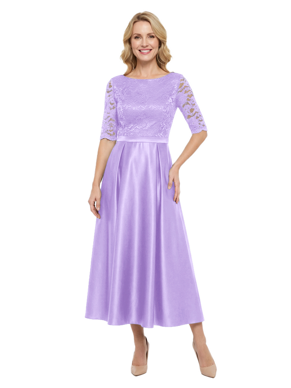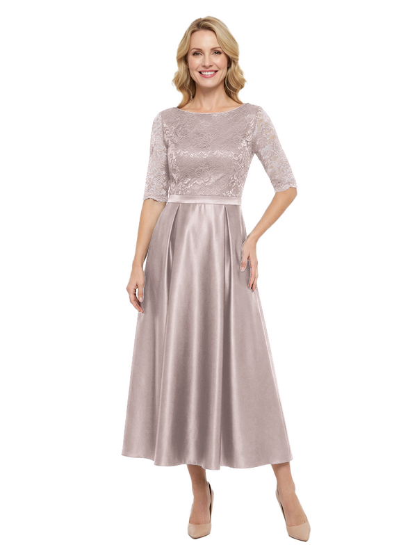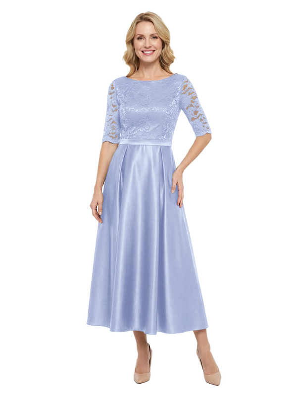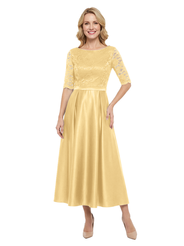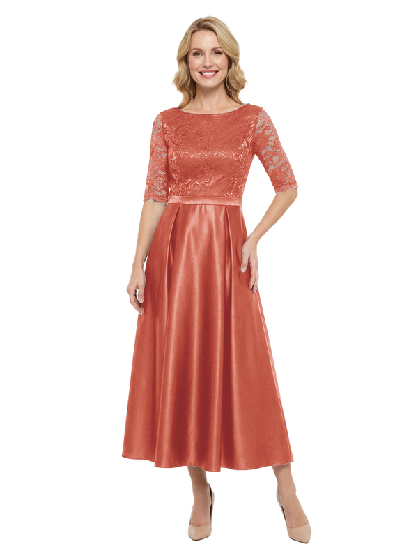 Chicsew Elegant Boat Neck Lace 3/4 Sleeves Satin Ankle-Length A-Line Mother Of The Bride Dress- ChicSew – ChicSew