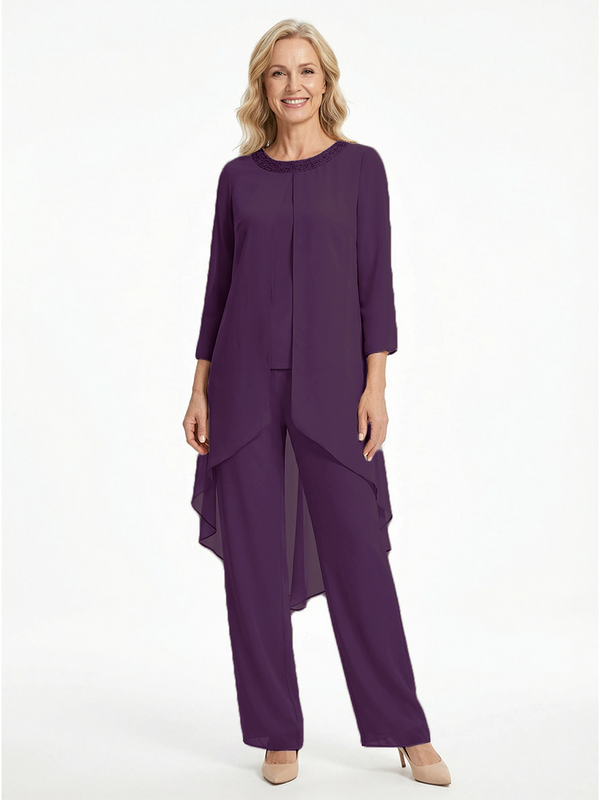 ChicSew Elegant Chiffon Long Sleeves Pant Suit For Mother Of The Bride With Jacket - ChicSew – ChicSew