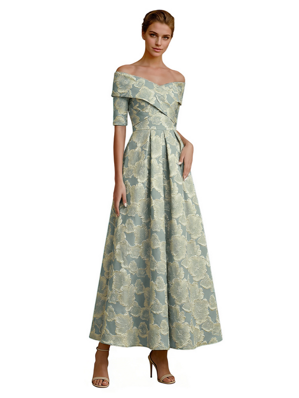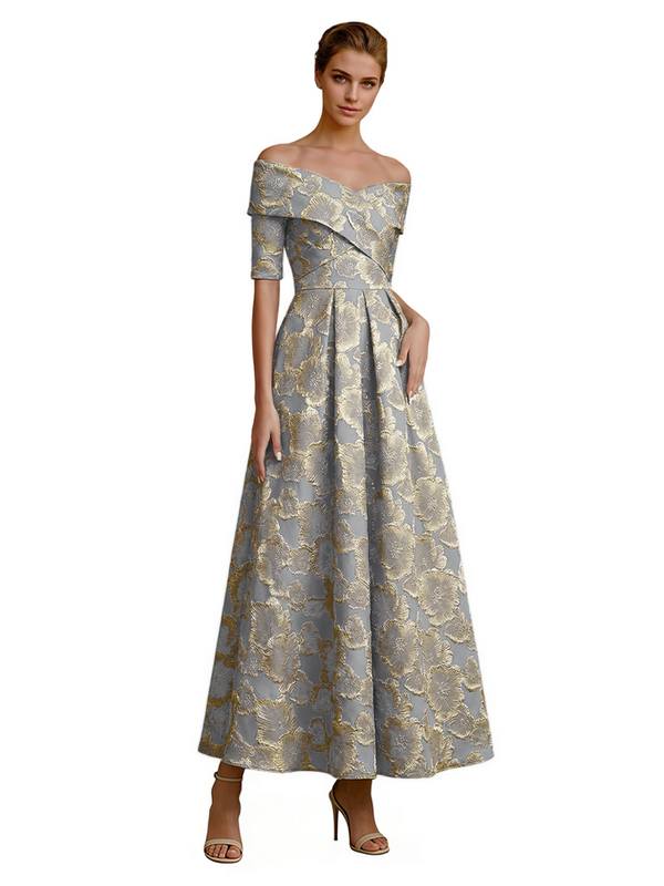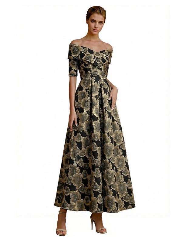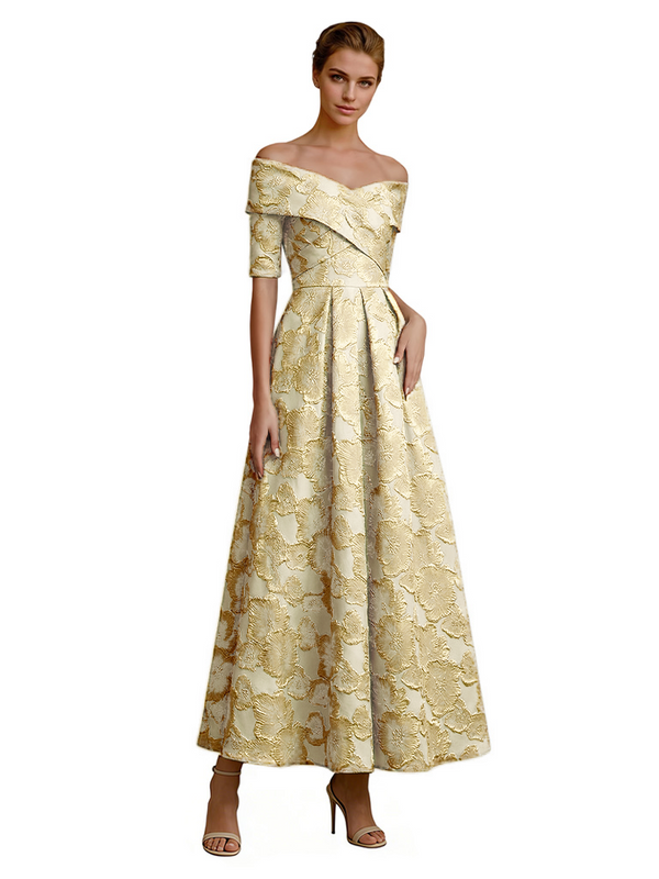 ChicSew Elegant Floral Jacquard Off Shoulder Tea-Length Formal Evening Dresses - ChicSew – ChicSew