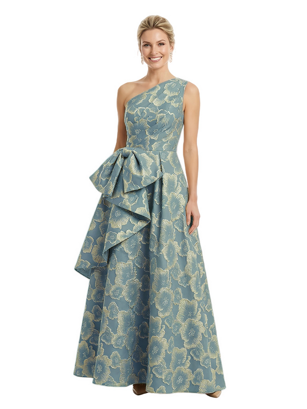 ChicSew Elegant Floral Jacquard One Shoulder Ruffle Bow Knot Long Formal Evening Dresses - ChicSew – ChicSew