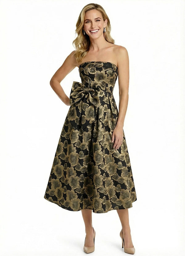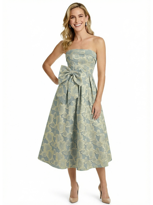 ChicSew Elegant Floral Jacquard Strapless A-Line Tea-Length Formal Evening Dresses