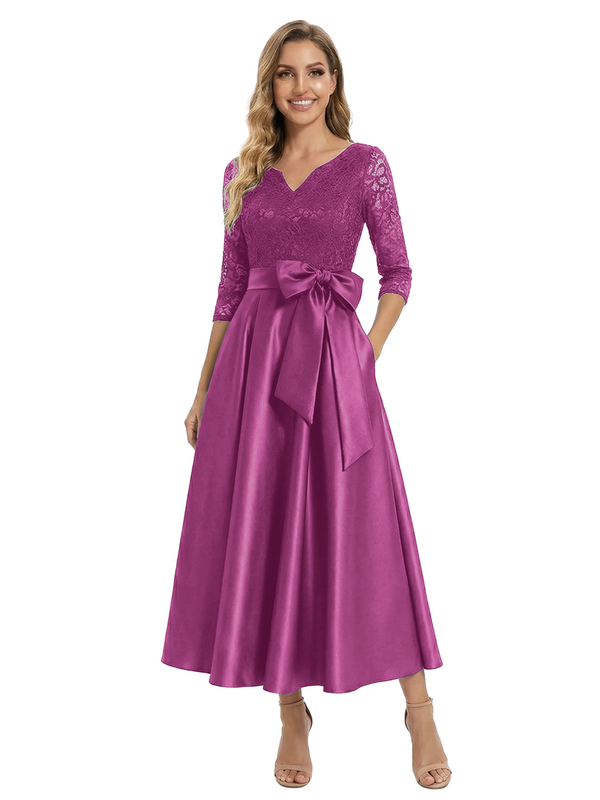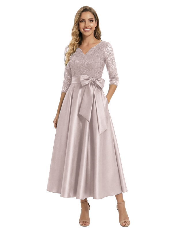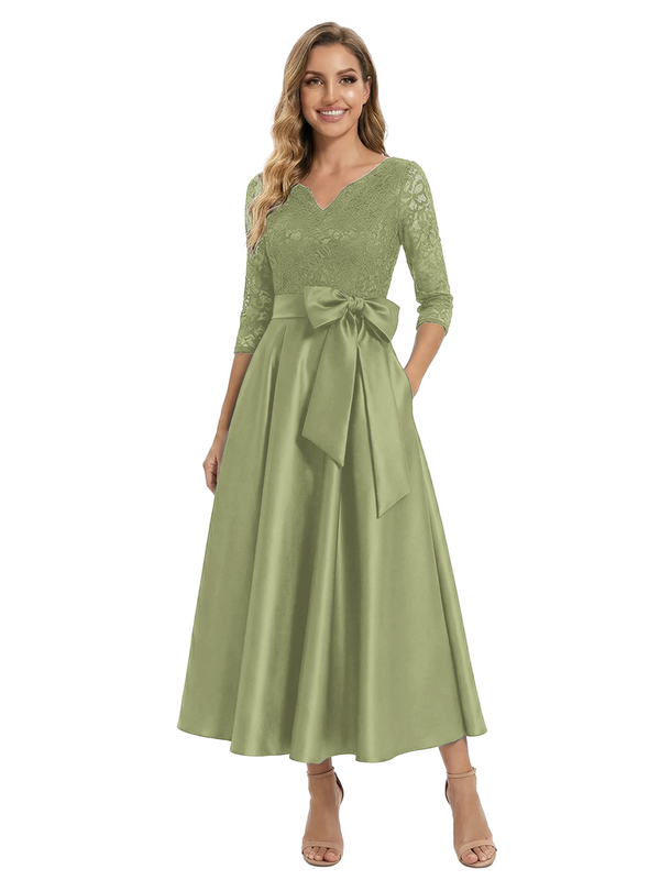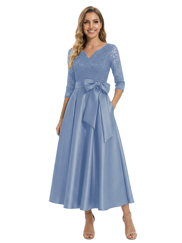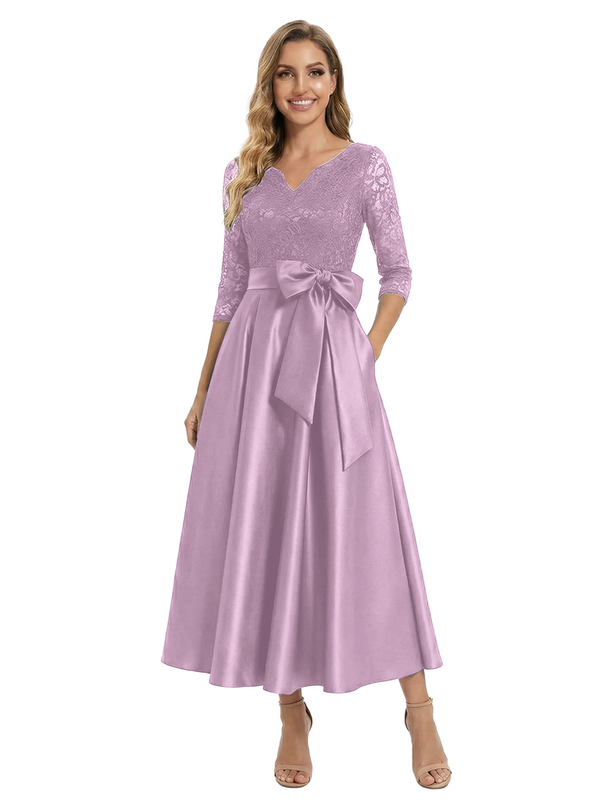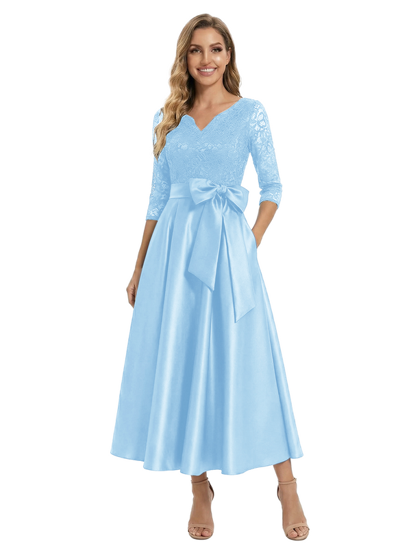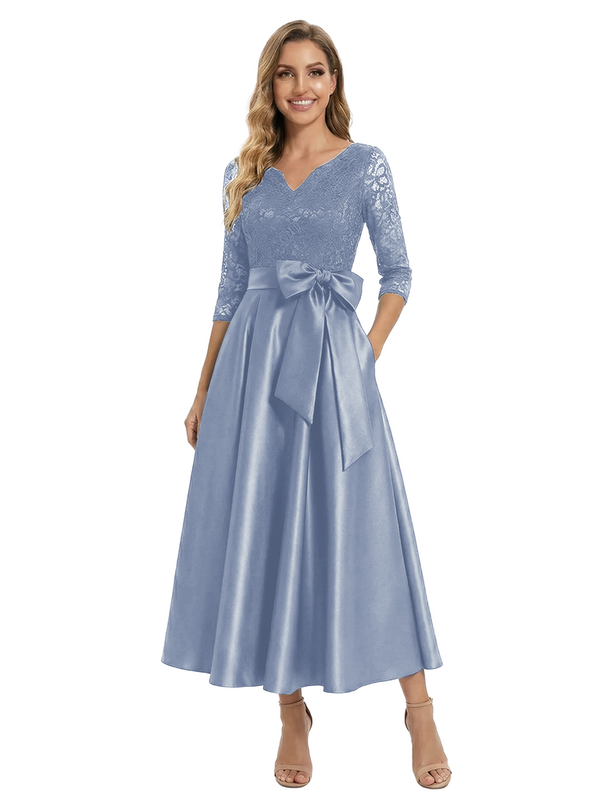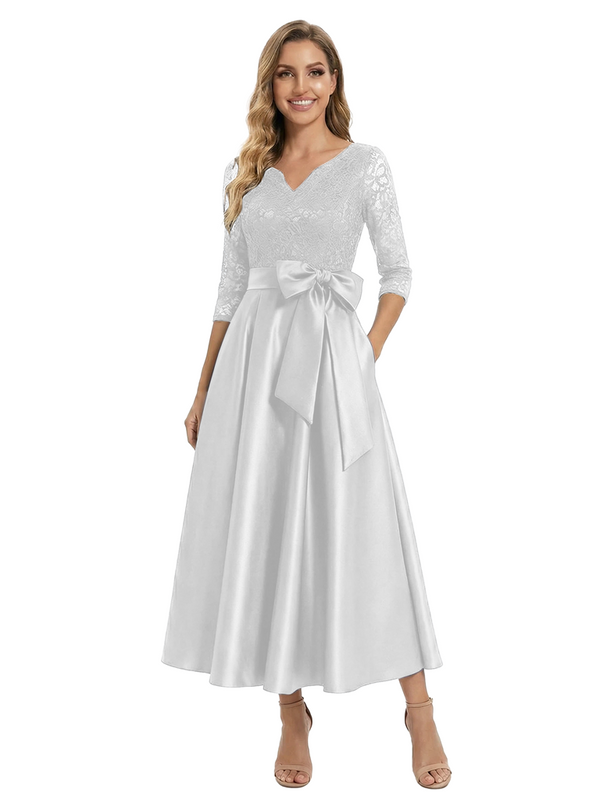 Chicsew Elegant Lace TOP 3/4 Sleeve Satin A-Line Mother of The Bride Dresses With Bow Knot- ChicSew – ChicSew