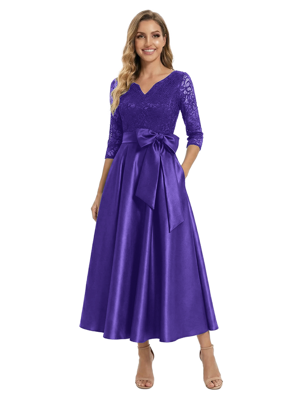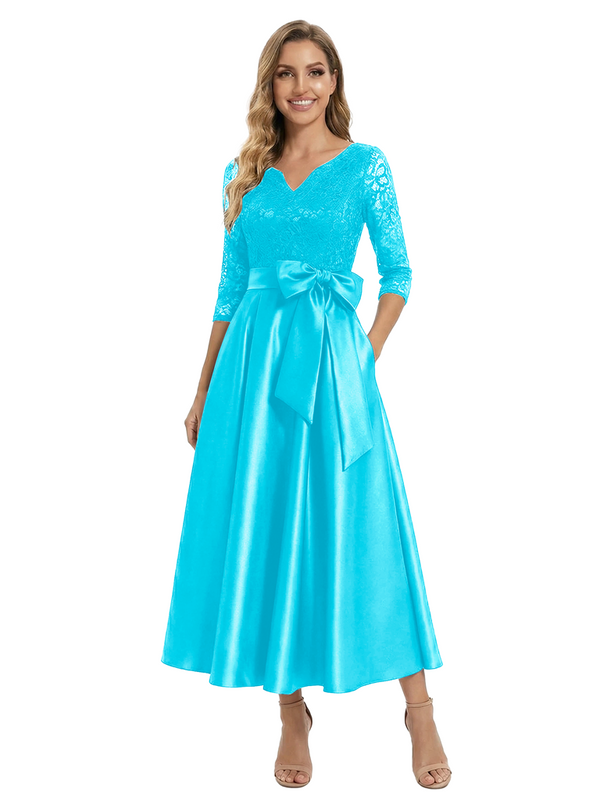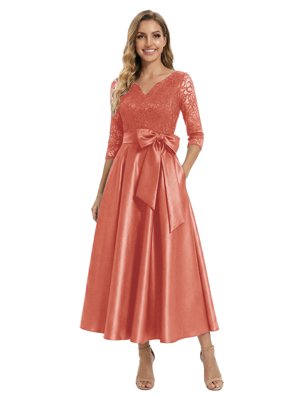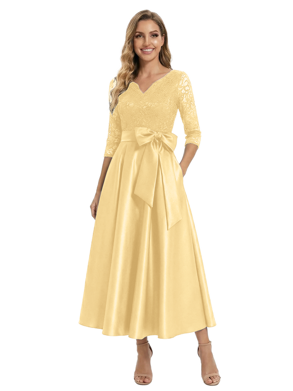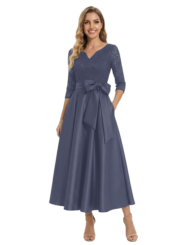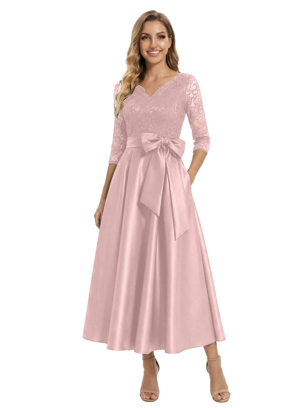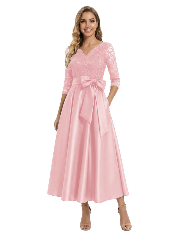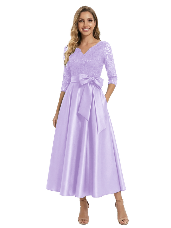 Chicsew Elegant Lace TOP 3/4 Sleeve Satin A-Line Mother of The Bride Dresses With Bow Knot- ChicSew – ChicSew