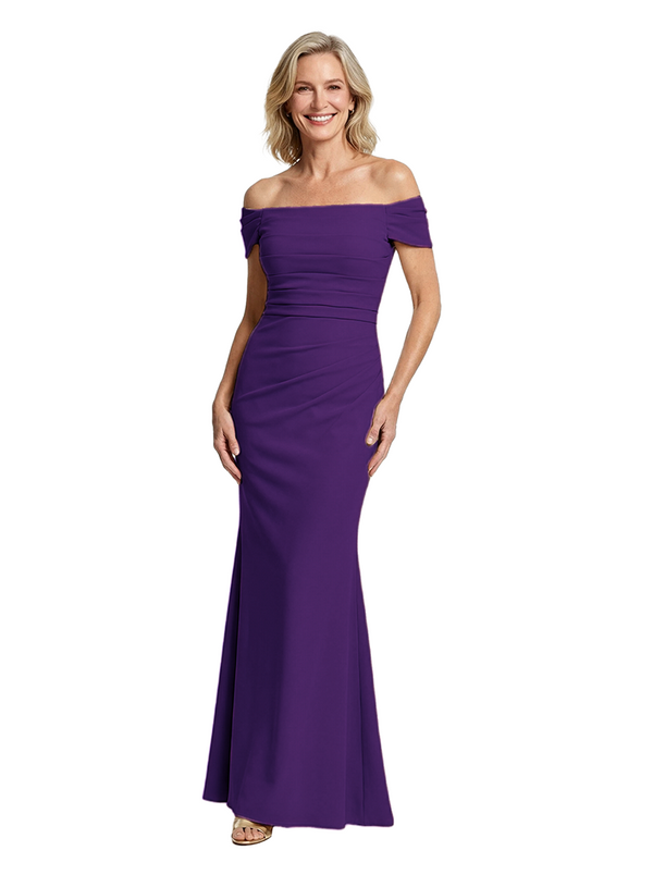 Chicsew Elegant Off Shoulder Sleeveless Ruched Floor Length Mermaid Mother Of The Groom Dress