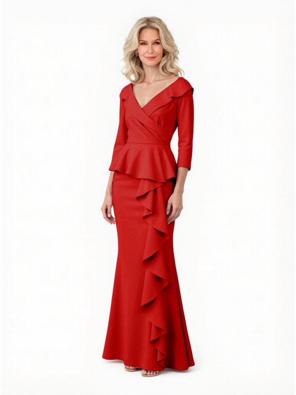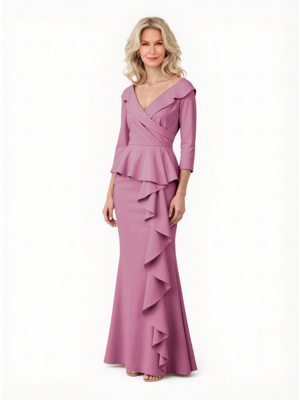 Chicsew Elegant V-Neck 3/4 Sleeves Ruched Mermaid Mother of The Groom Dress With Ruffles- ChicSew – ChicSew