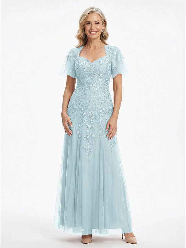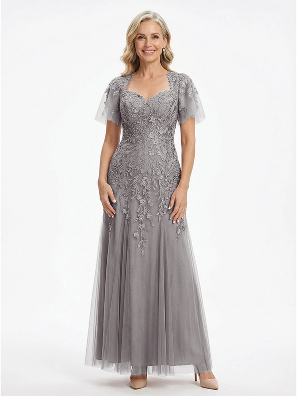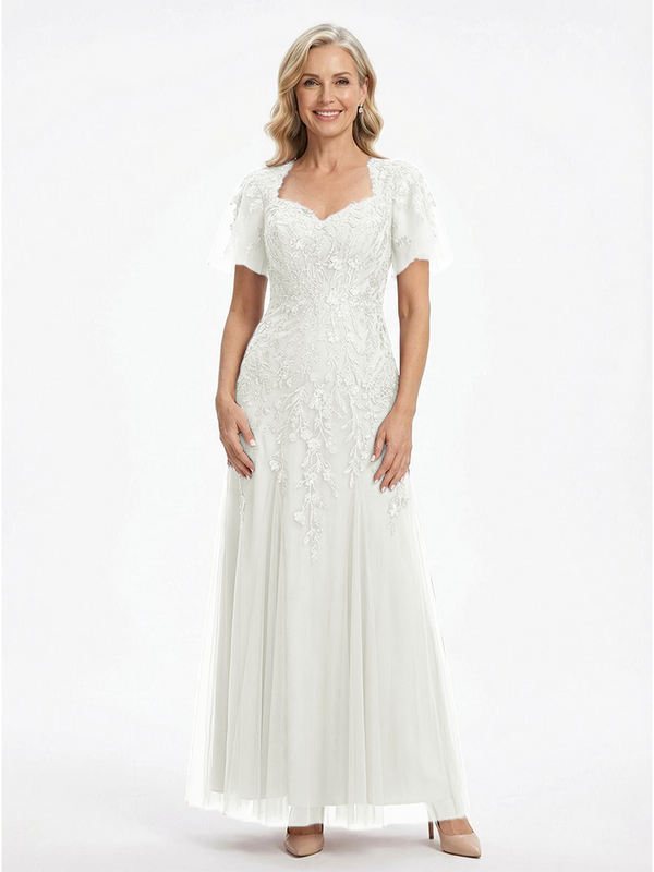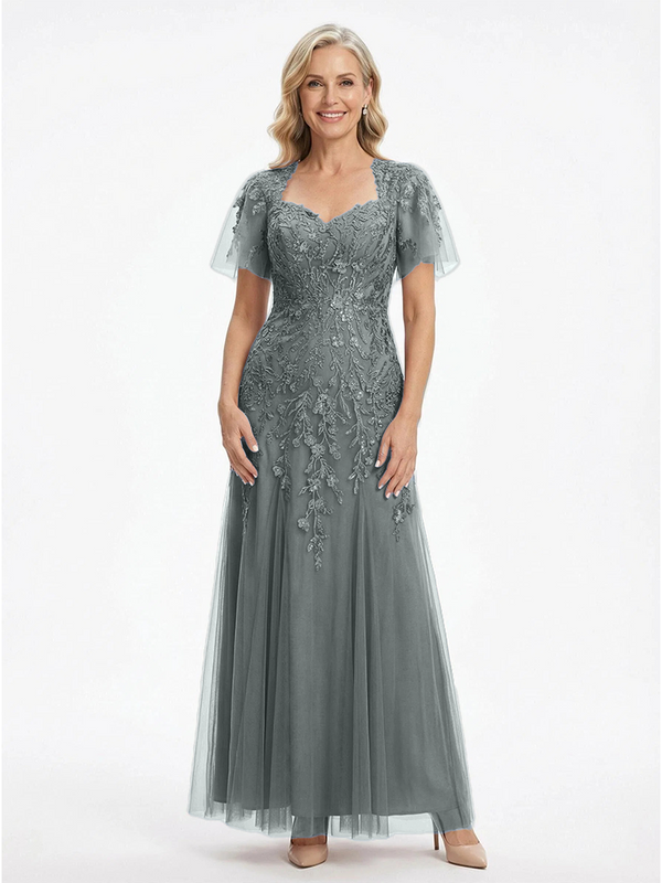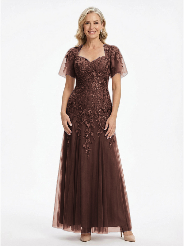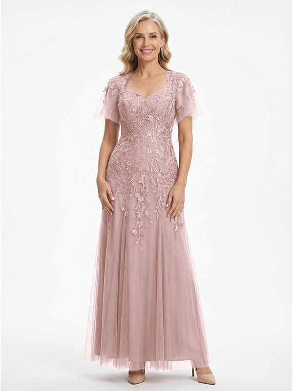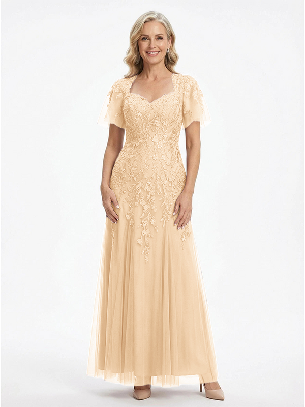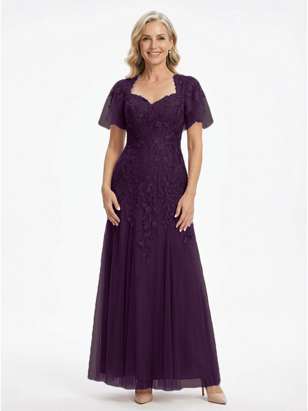 ChicSew Elegant V-Neck Short Sleeves A-Line Mother Of The Bride Gown Lace Tulle Overlay - ChicSew – ChicSew