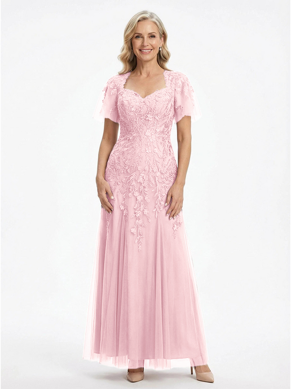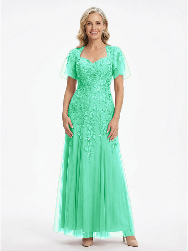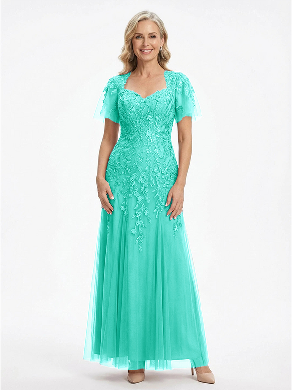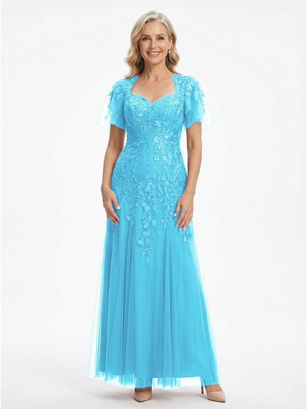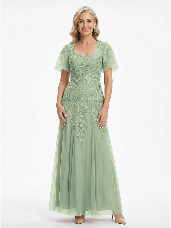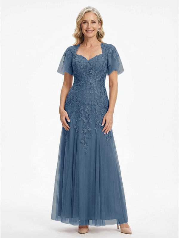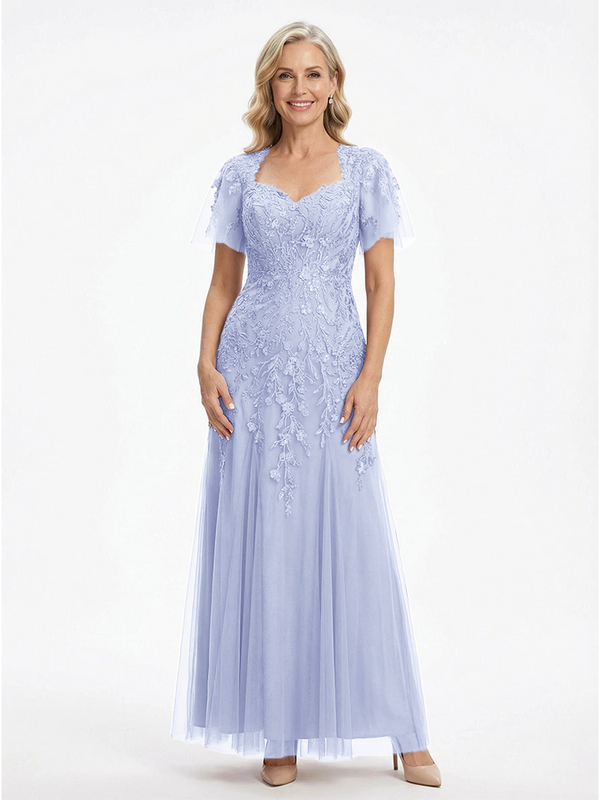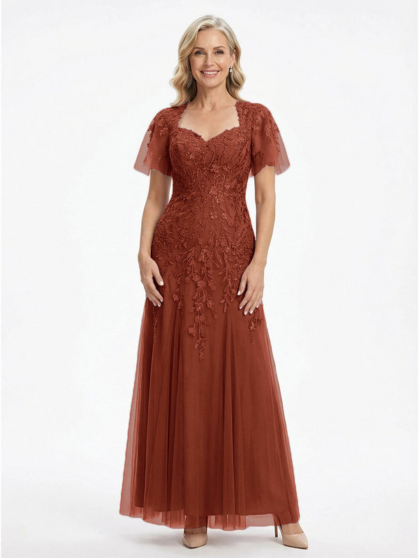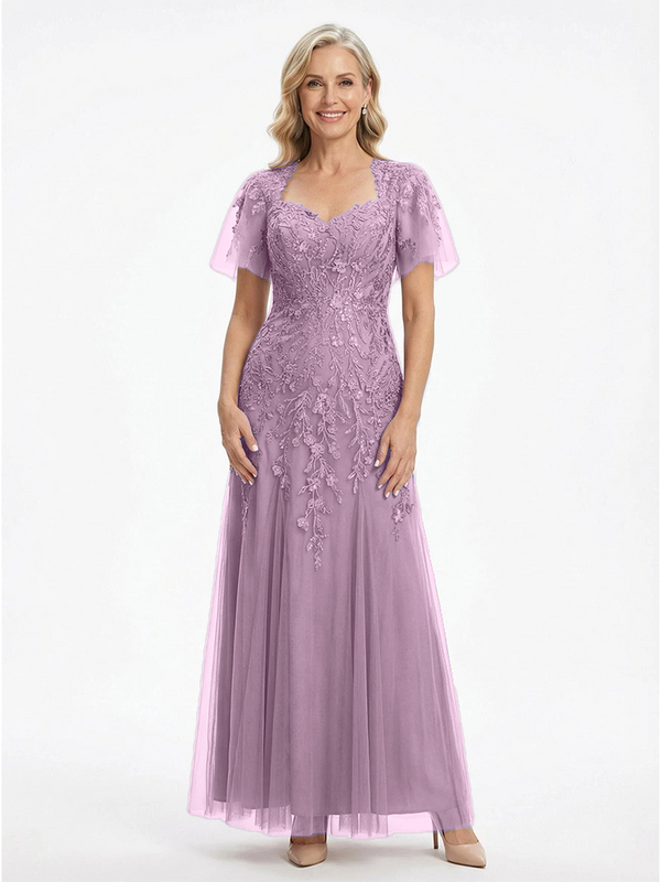 ChicSew Elegant V-Neck Short Sleeves A-Line Mother Of The Bride Gown Lace Tulle Overlay - ChicSew – ChicSew