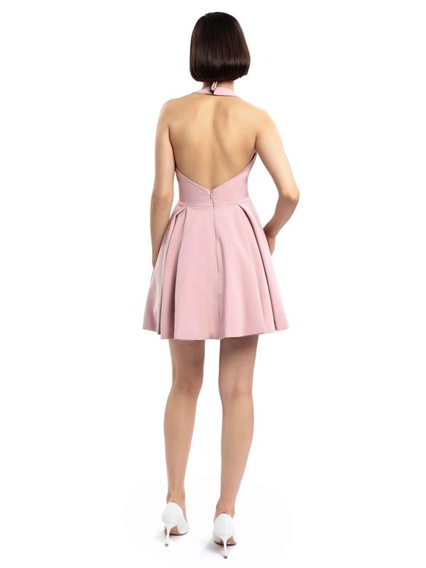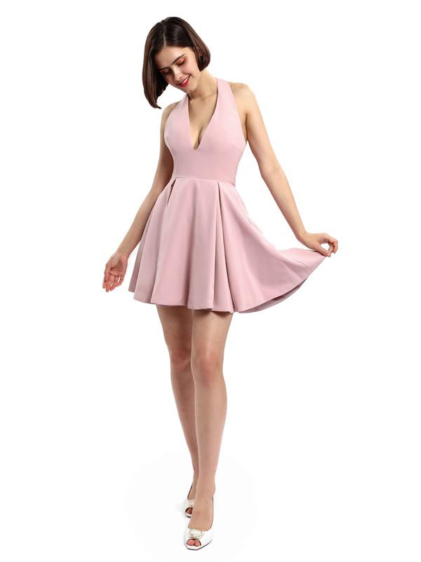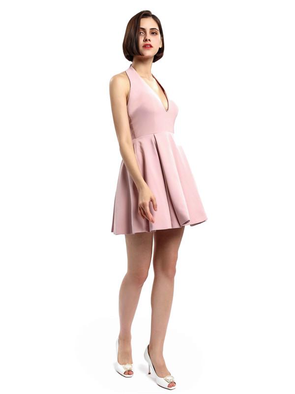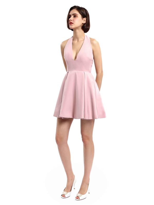 Simple Halter V-neck Short Backless Bridesmaid Dresses - ChicSew – ChicSew