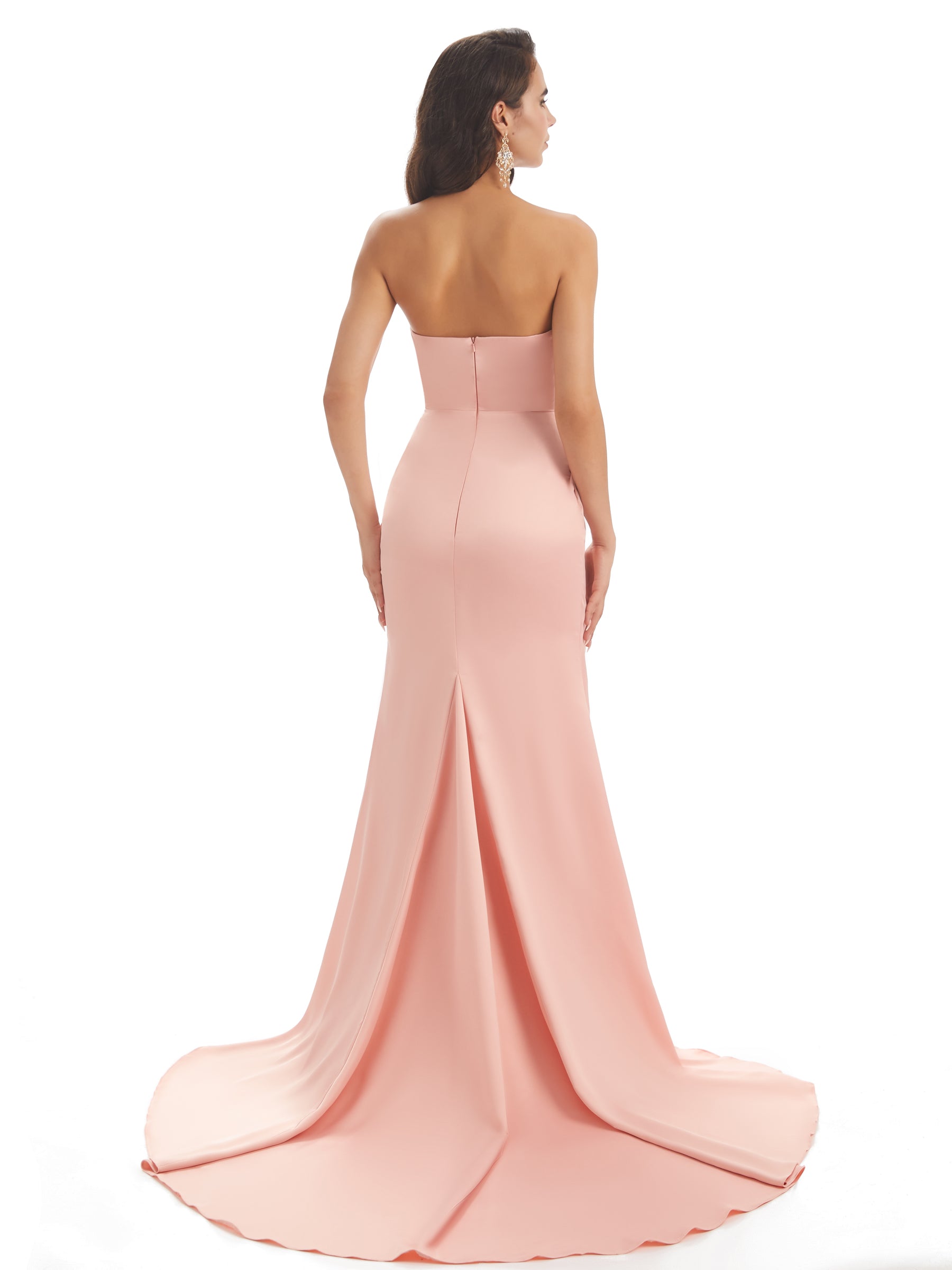 Sexy Soft Satin Side Slit Strapless Long Mermaid Bridesmaid Dresses Online