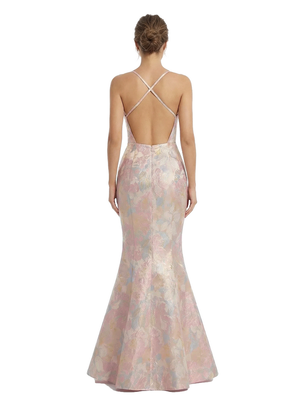 ChicSew Fancy Jacquard Satin Spaghetti Straps Mermaid Criss-Cross Long Formal Evening Dresses - ChicSew – ChicSew