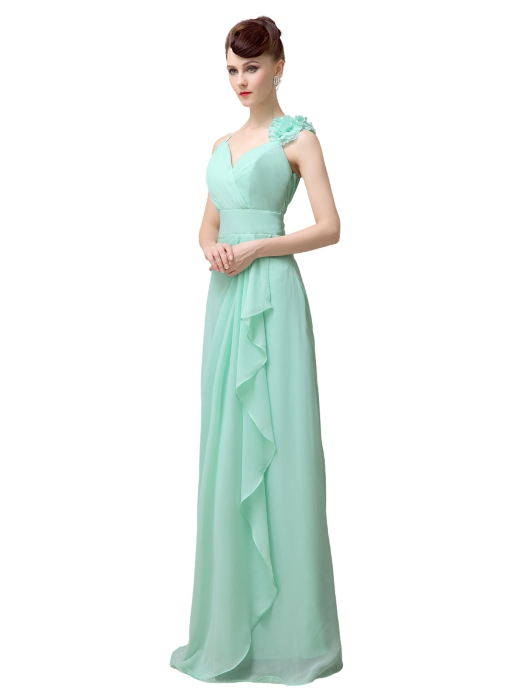 V-neck A-line Simple Chiffon Floor-Length Long Bridesmaid Dresses