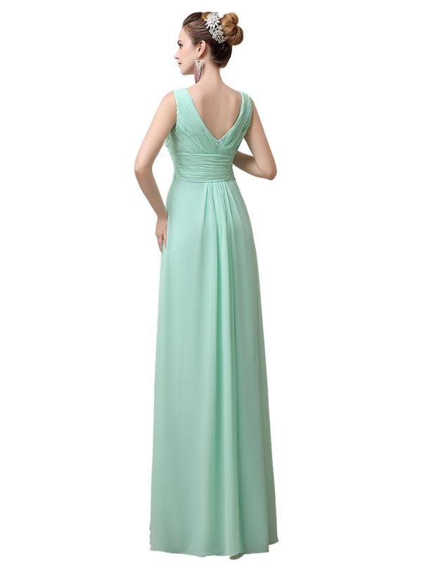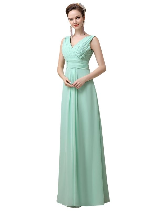 Simple A-line Chiffon V-Neck Floor-Length Long Bridesmaid Dresses - ChicSew – ChicSew