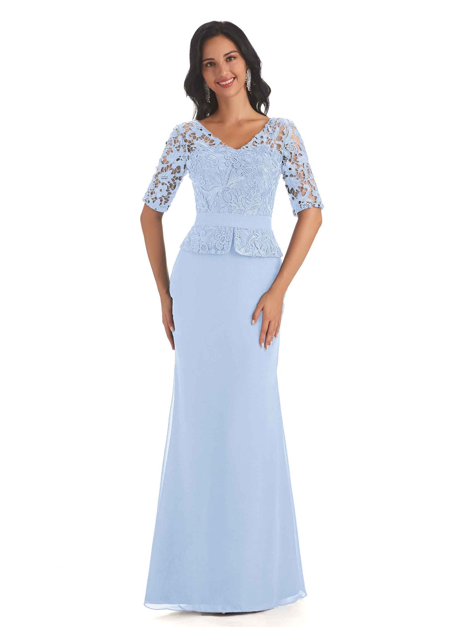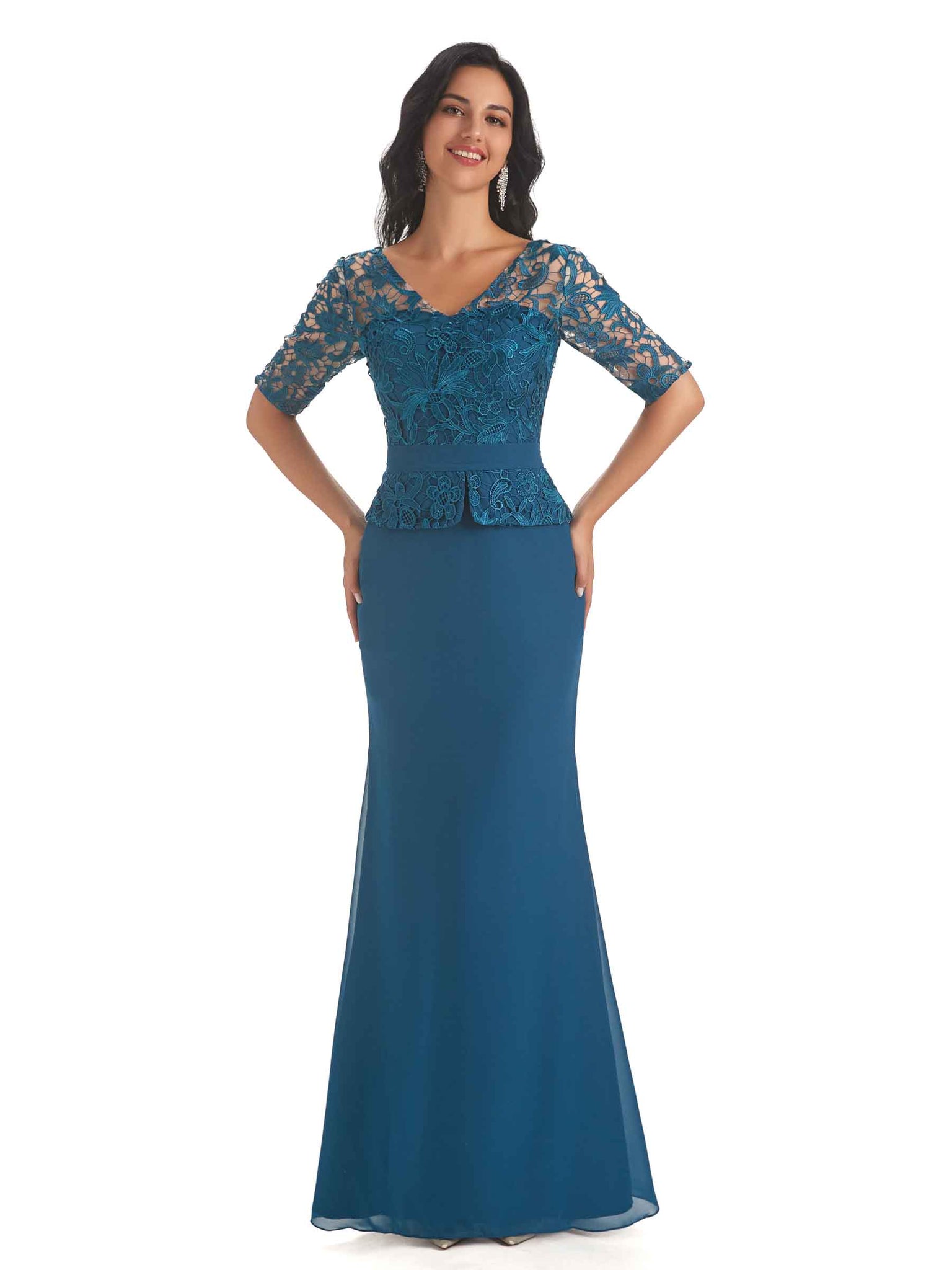 Elegant Chiffon Half Sleeves Lace Long Mother  of The Bride DressesElegant Chiffon Half Sleeves Lace Long Mother  of The Bride Dresses