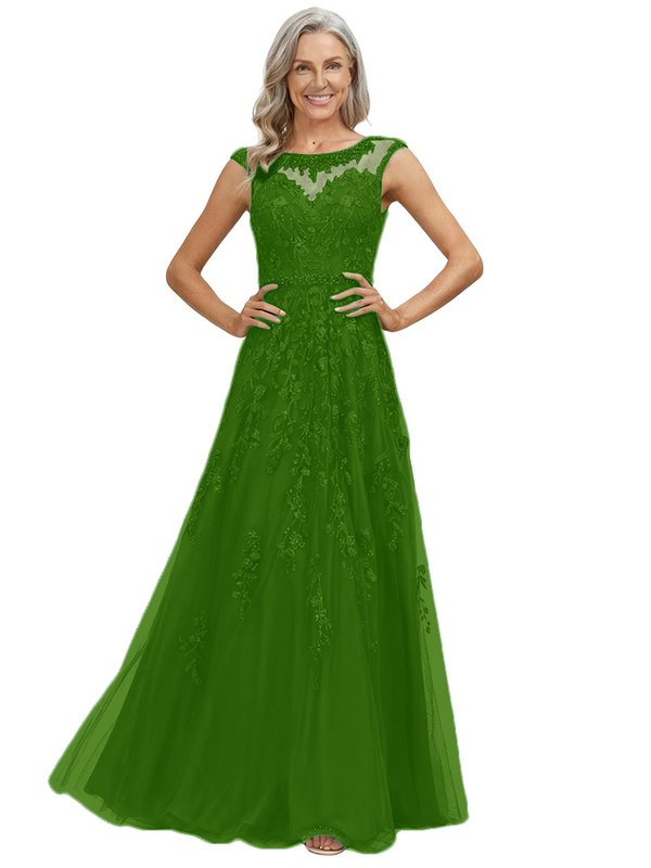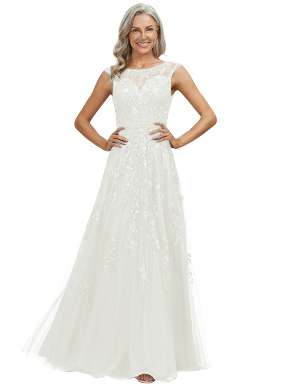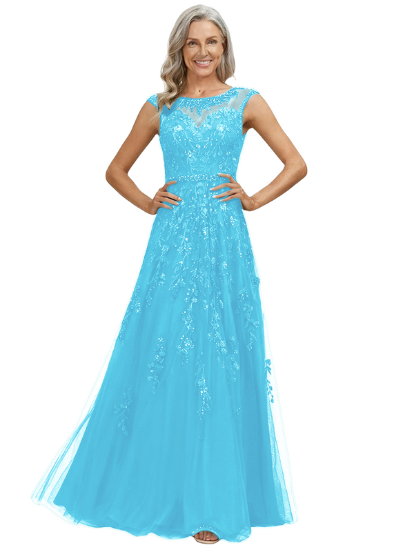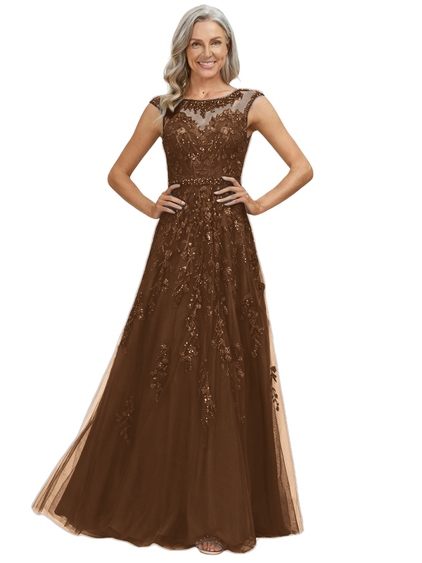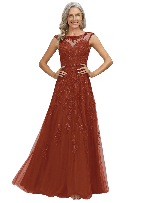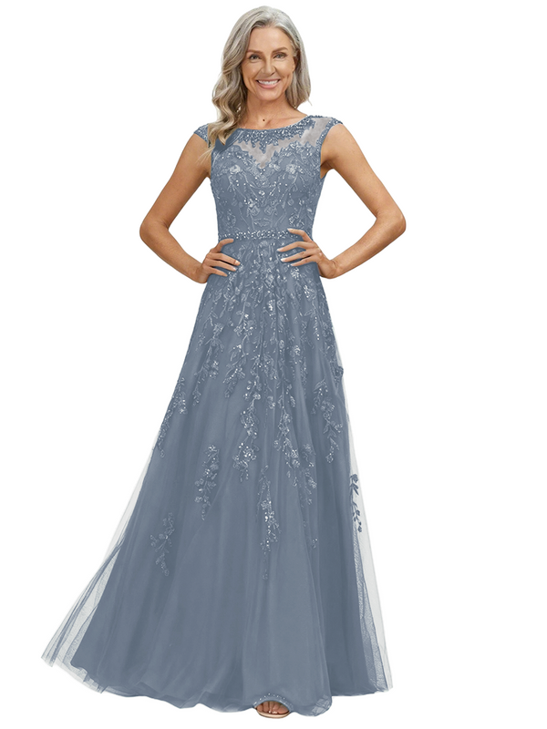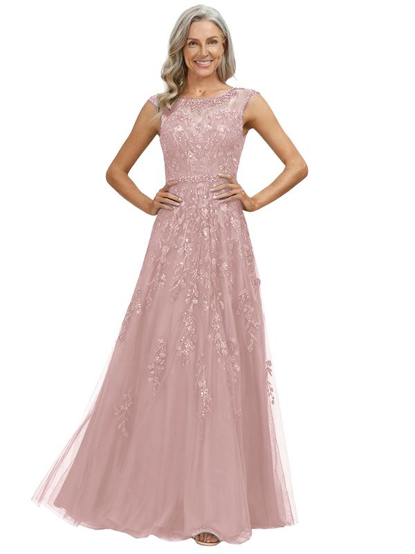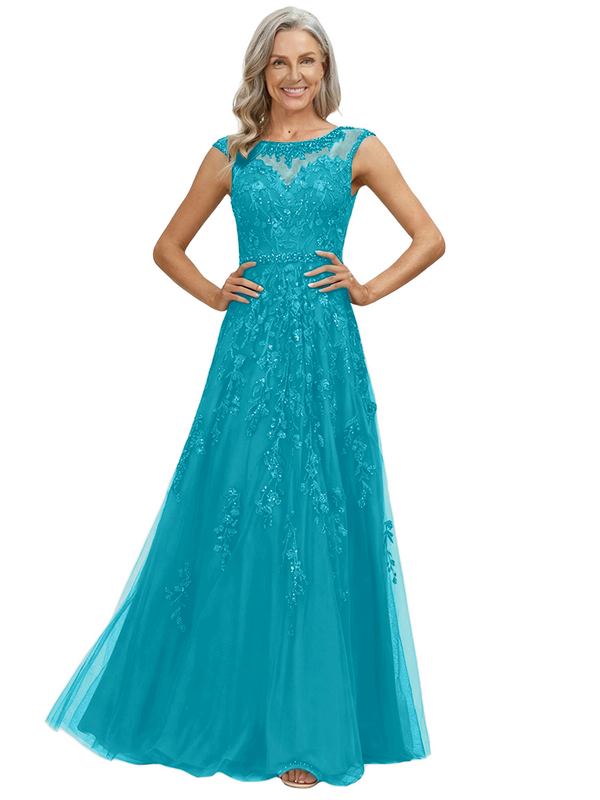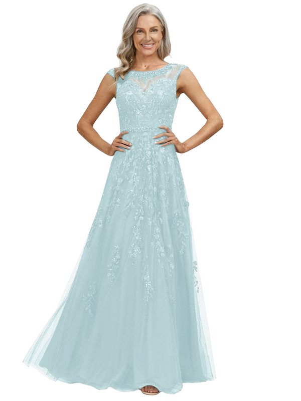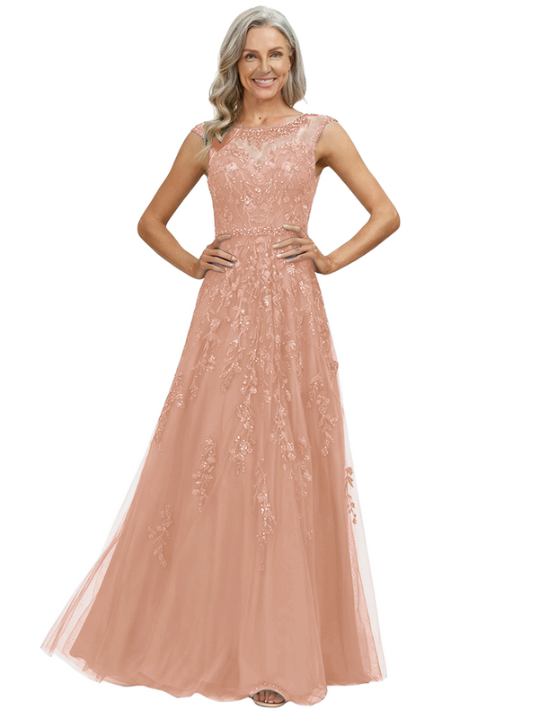 ChicSew Illusion Sleeveless Beaded Lace Applique A-Line Floor Length Tulle Overlay Elegant Mother of the Bride Dresses - ChicSew – ChicSew