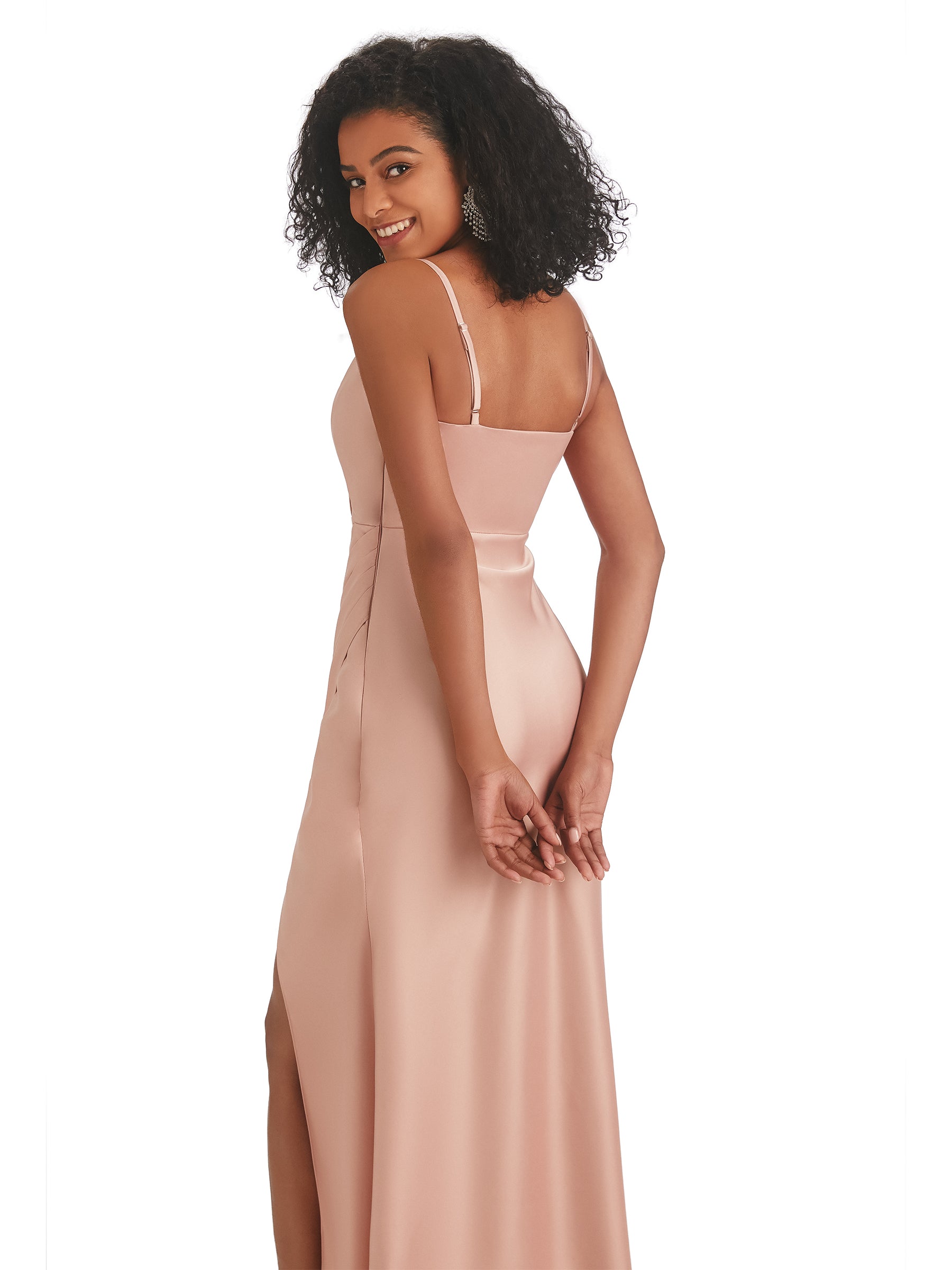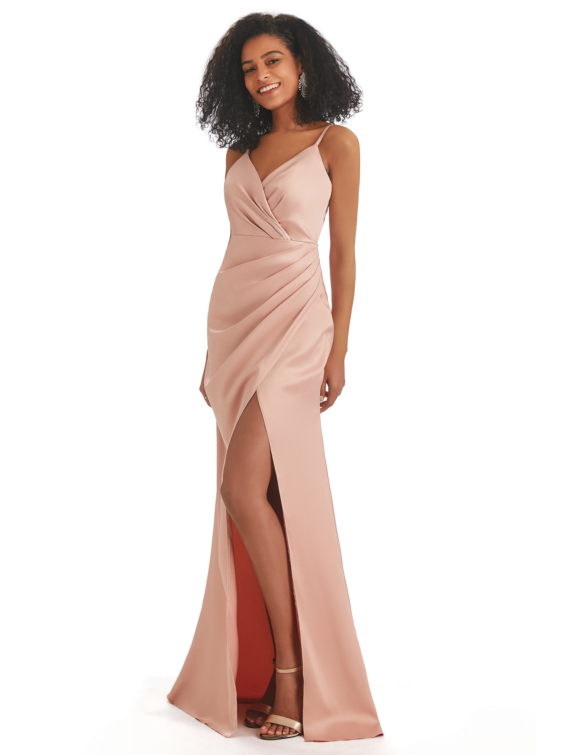 Spaghetti Straps Mermaid Soft Satin Side Slit Long African Bridesmaid Dresses