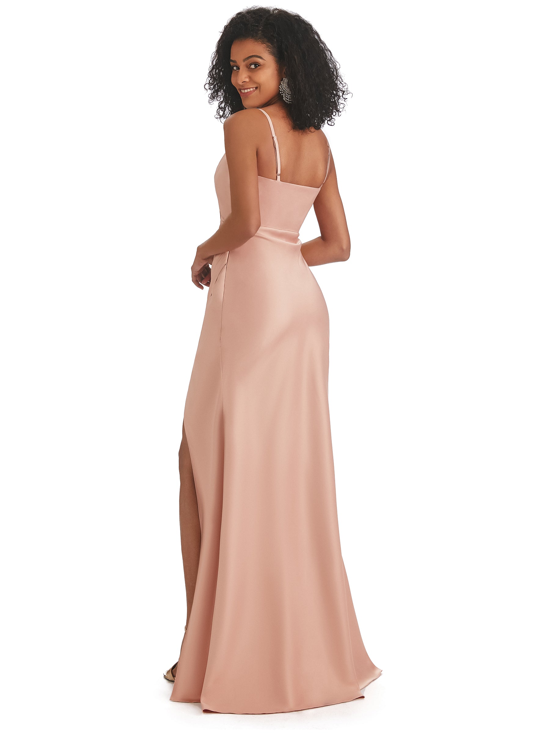 Spaghetti Straps Mermaid Soft Satin Side Slit Long African Bridesmaid Dresses $118.99