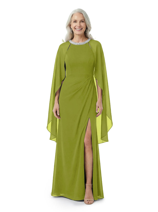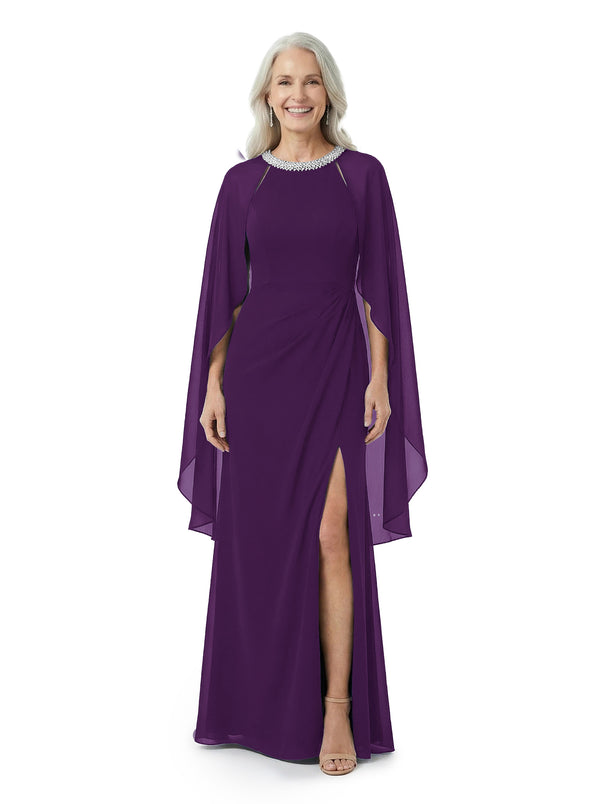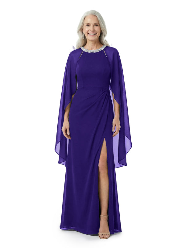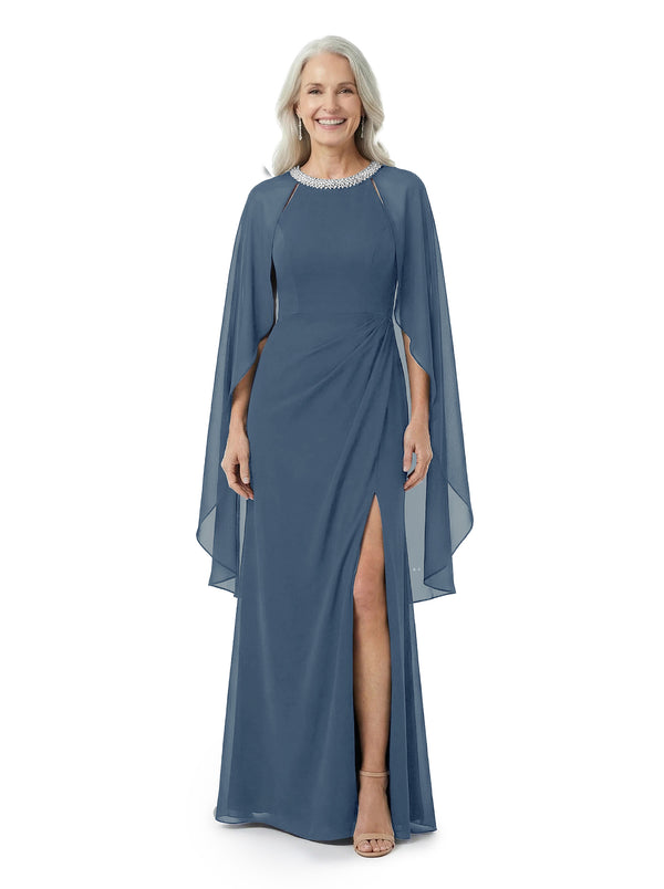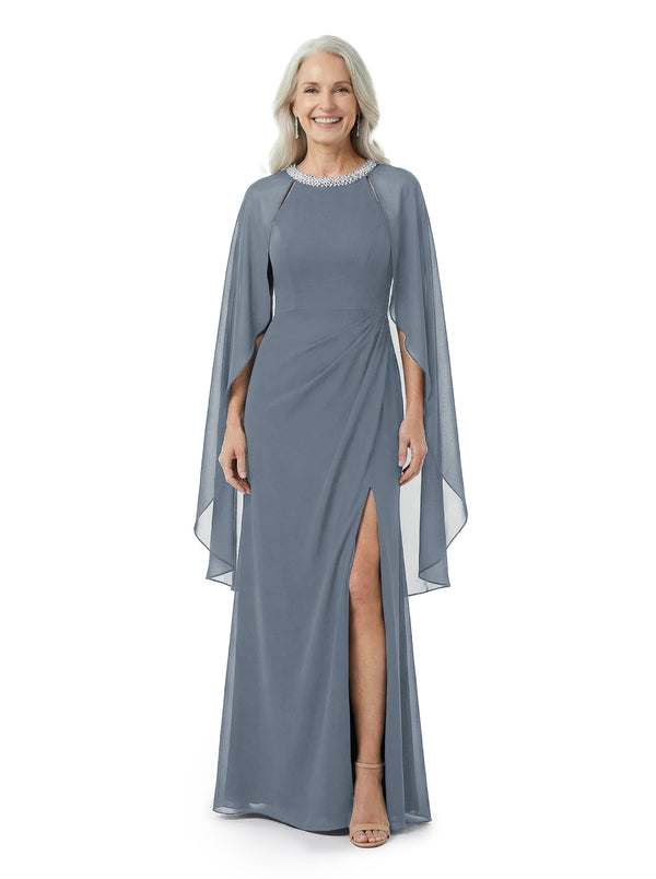 ChicSew Jewel Side Slit Overlay Layered Chiffon Floor-Length Casual Mother of the Bride Dresses
