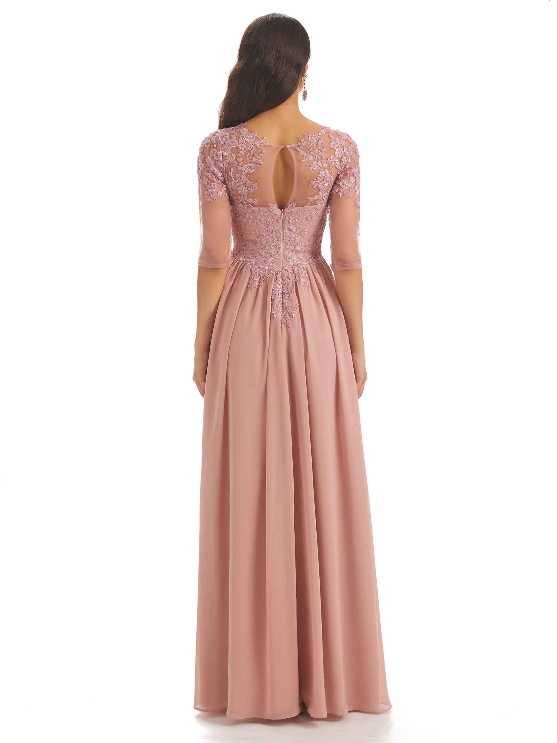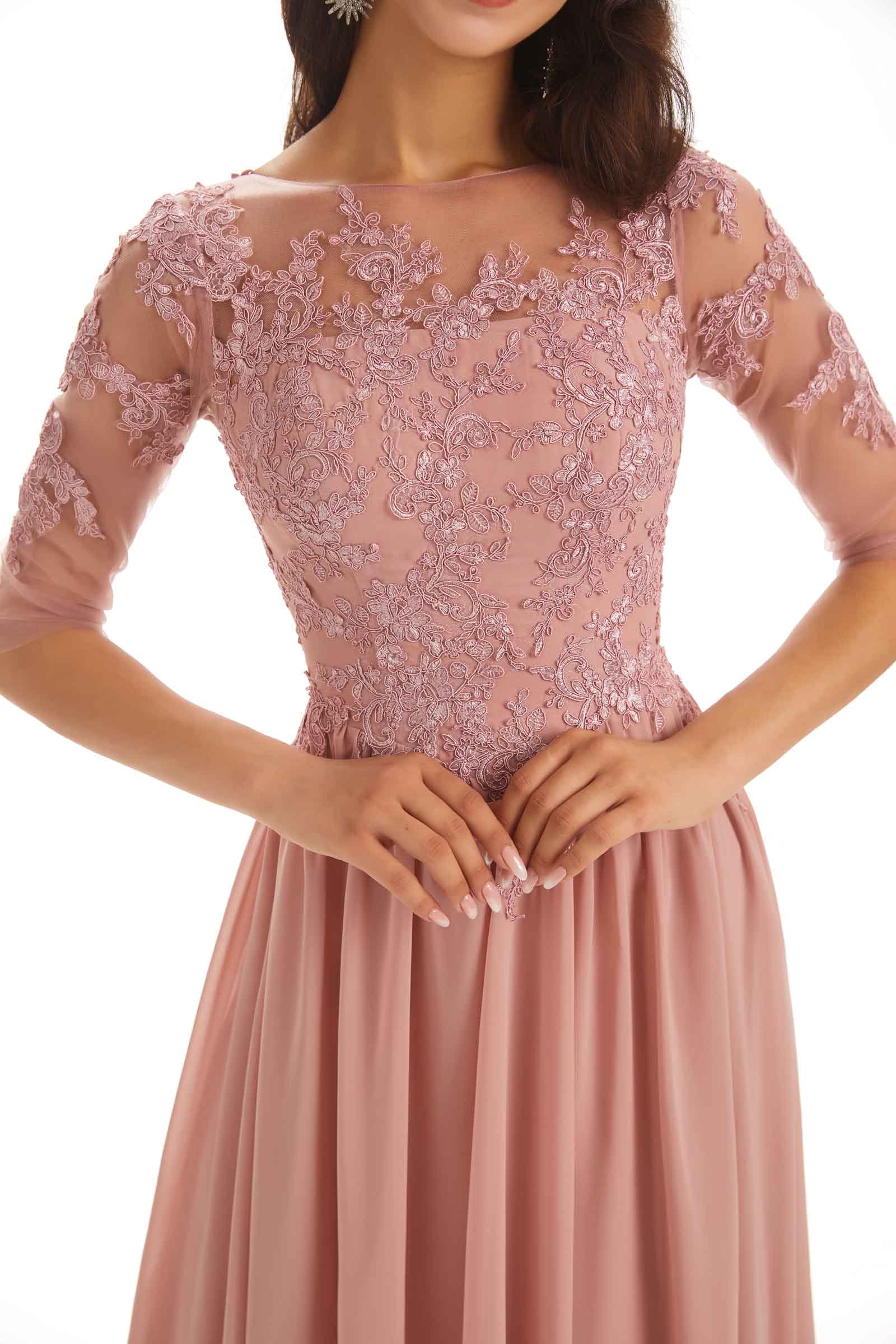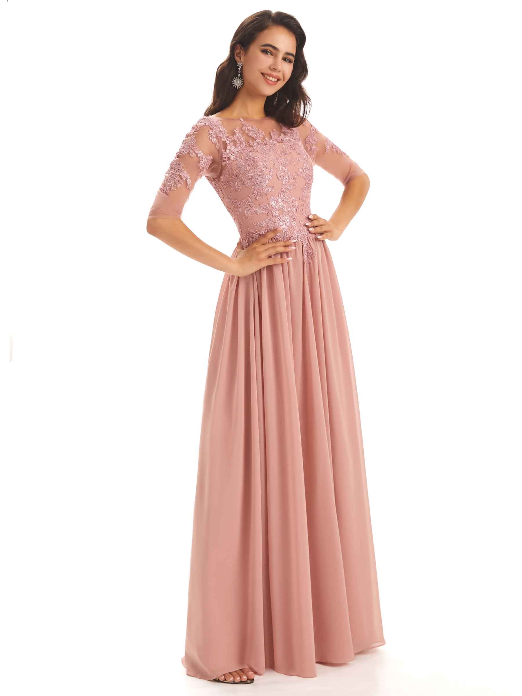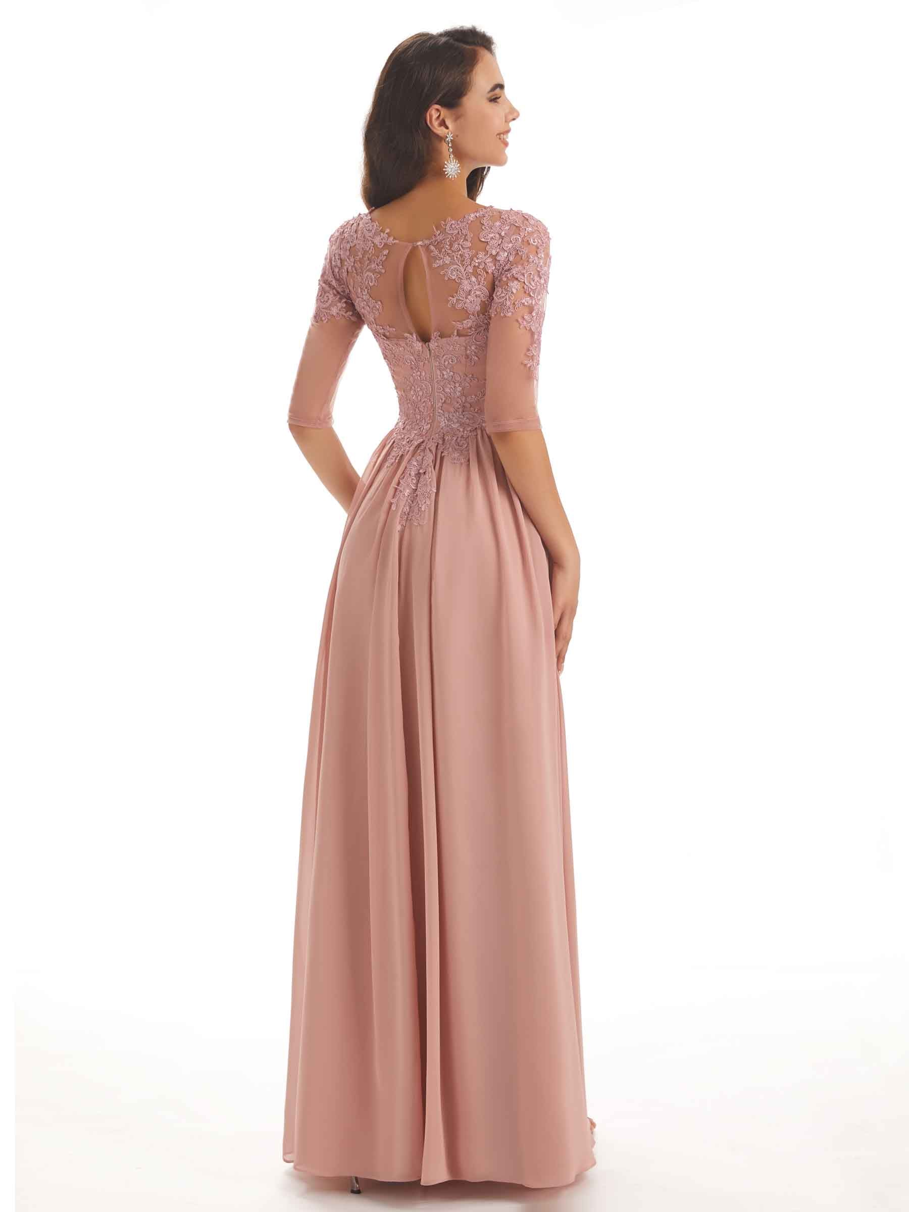 Elegant Chiffon Half Sleeves Lace Long Mother  of The Bride DressesElegant Chiffon Half Sleeves Lace Long Mother  of The Bride Dresses